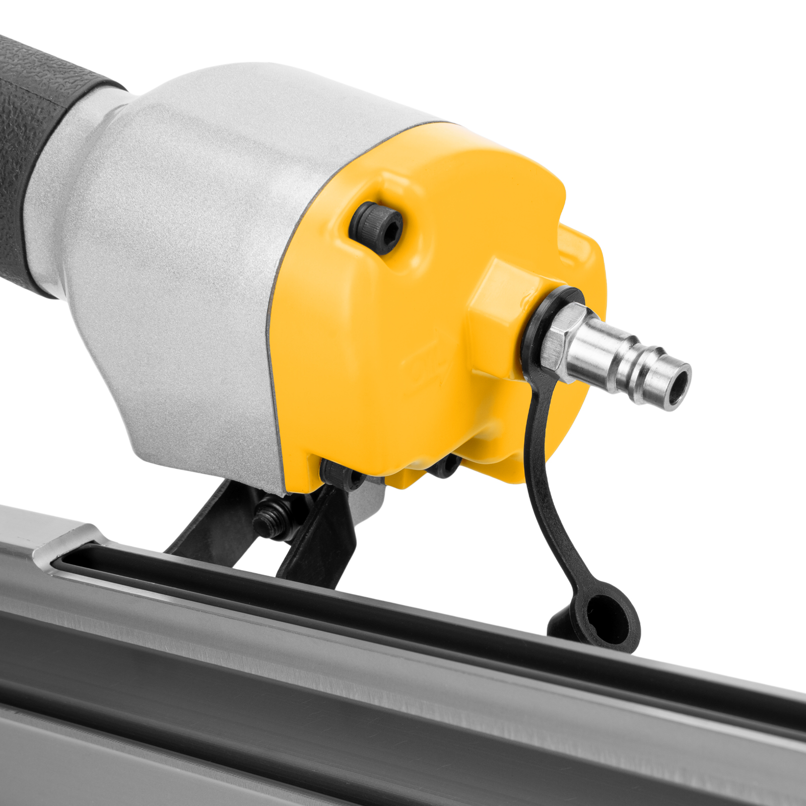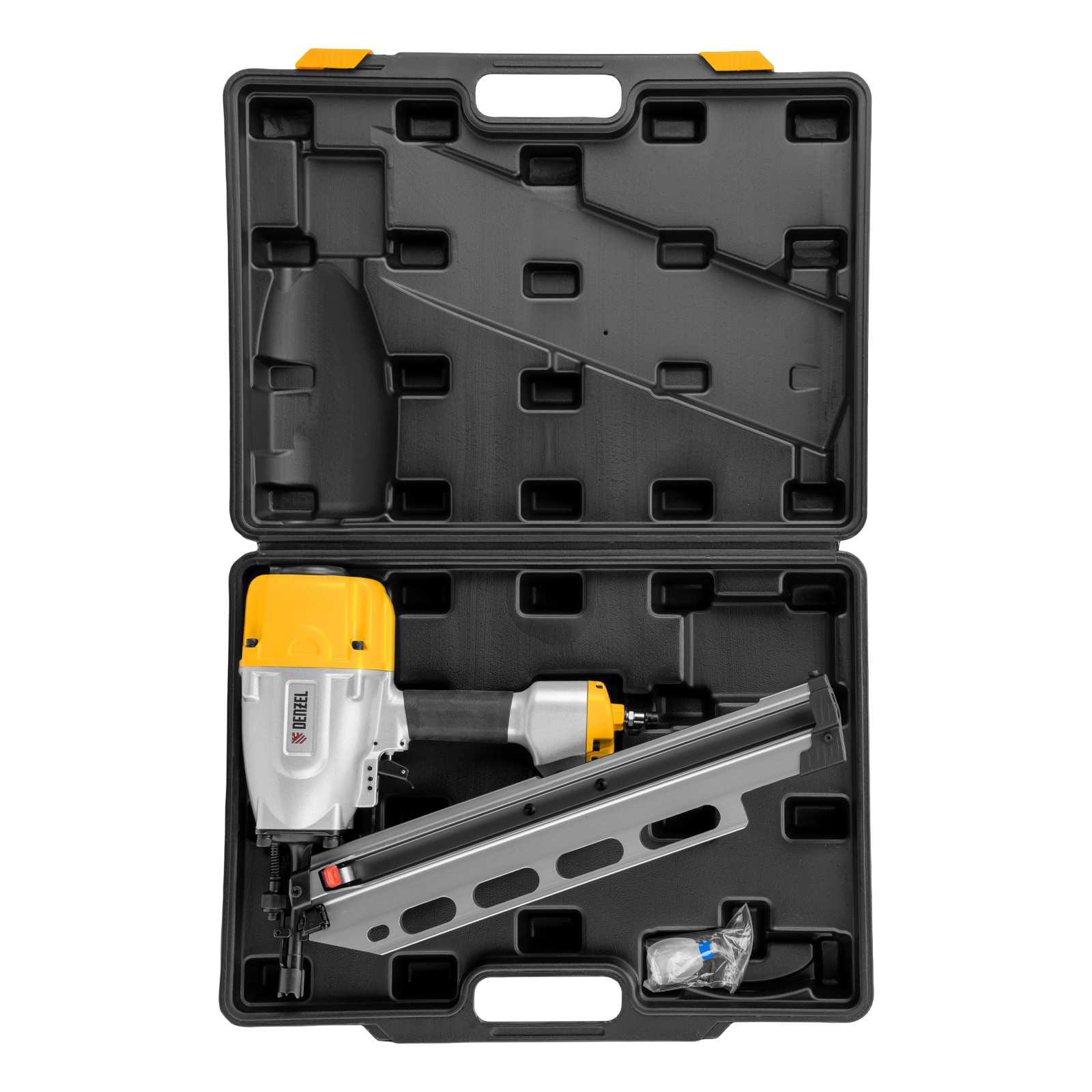 - Удобное хранение и транспортировка — нейлер поставляется в прочном пластиковом кейсе.