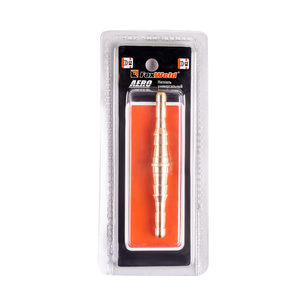 Ниппель универсальный AERO от FoxWeld обеспечивает надежное и герметичное соединение воздушного шланга диаметром 6 мм или 9 мм к воздушной магистрали. Изготовлен из бронзы.