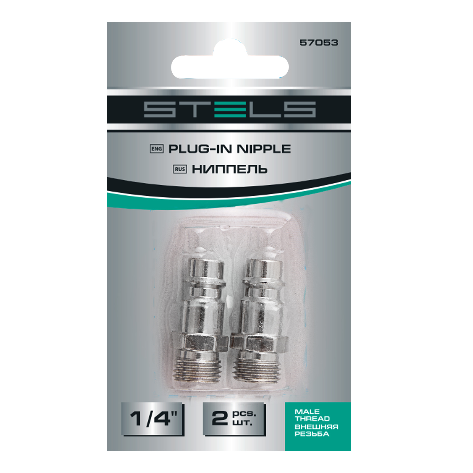 Ниппель универсальный быстросъемный ("папа") 1/4, внешняя резьба, 2 шт, Stels в Москве