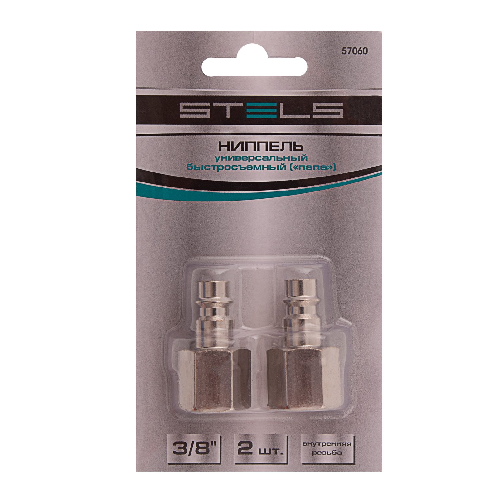 Универсальный быстросъемный ниппель Stels 57060, 2 шт. в упаковке, предназначен для перехода с внутренней резьбы 3/8 дюйма на рапид типа «папа» для монтажа пневматических линий. Используется для работы с пневмоинструментом, будет полезен на строительной площадке, в гараже и автосервисе.
