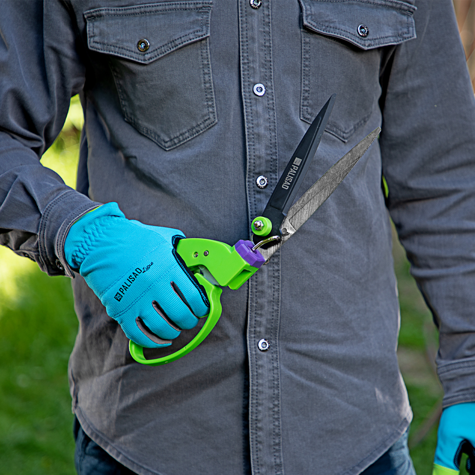 Газонные ножницы Palisad 60574 длиной 350 мм, с пластиковыми обрезиненными рукоятками, — инструмент для подстригания травы вдоль кромок газонов, дорожек, вдоль бордюров, ограждений, возле кустов. Лезвия поворачиваются на 180°, что облегчает работу в труднодоступных местах. Гарда на нижней рукоятке защищает пальцы от царапин, проколов и ссадин. Механизм автооткрывания препятствует заеданию лезвий при стрижке жесткой травы. Ножницы помогут привести в порядок дачный участок или придомовую территорию.