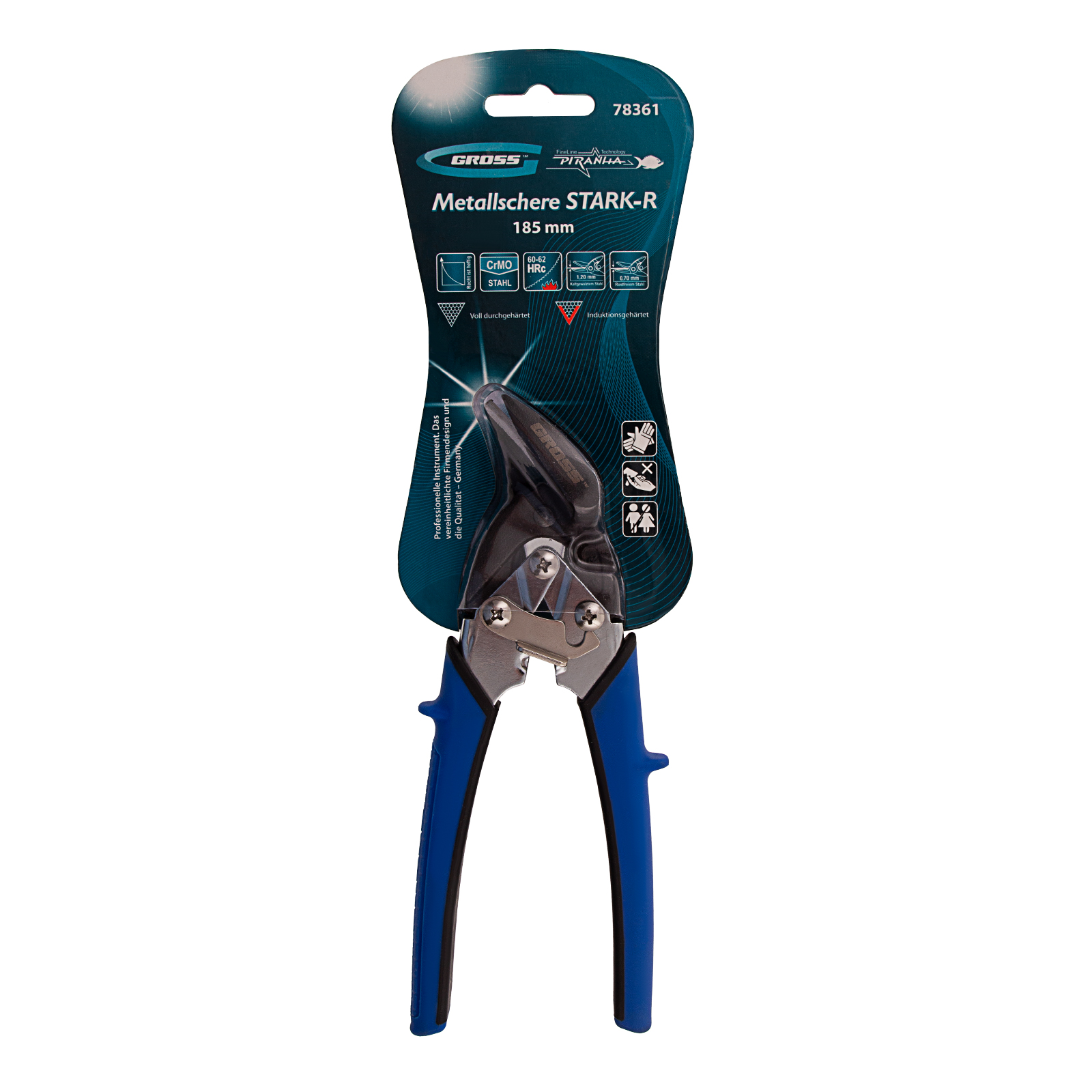 Ножницы по металлу Gross PIRANHA 78361 длиной 185 мм, из стали CrMo, с двухкомпонентными рукоятками, предназначены для прямого и криволинейного правого резания листовых заготовок. Выполняют точный рез цветных металлов, а также холоднокатаной стали толщиной до 1,2 мм и нержавеющей стали толщиной до 0,7 мм. Двойной рычажный механизм экономит усилия и повышает производительность ножниц. Общая длина инструмента составляет 185 мм, поэтому он удобен для работы в труднодоступных местах. Ножницы рекомендованы для профессионального применения, пригодятся также и в быту.