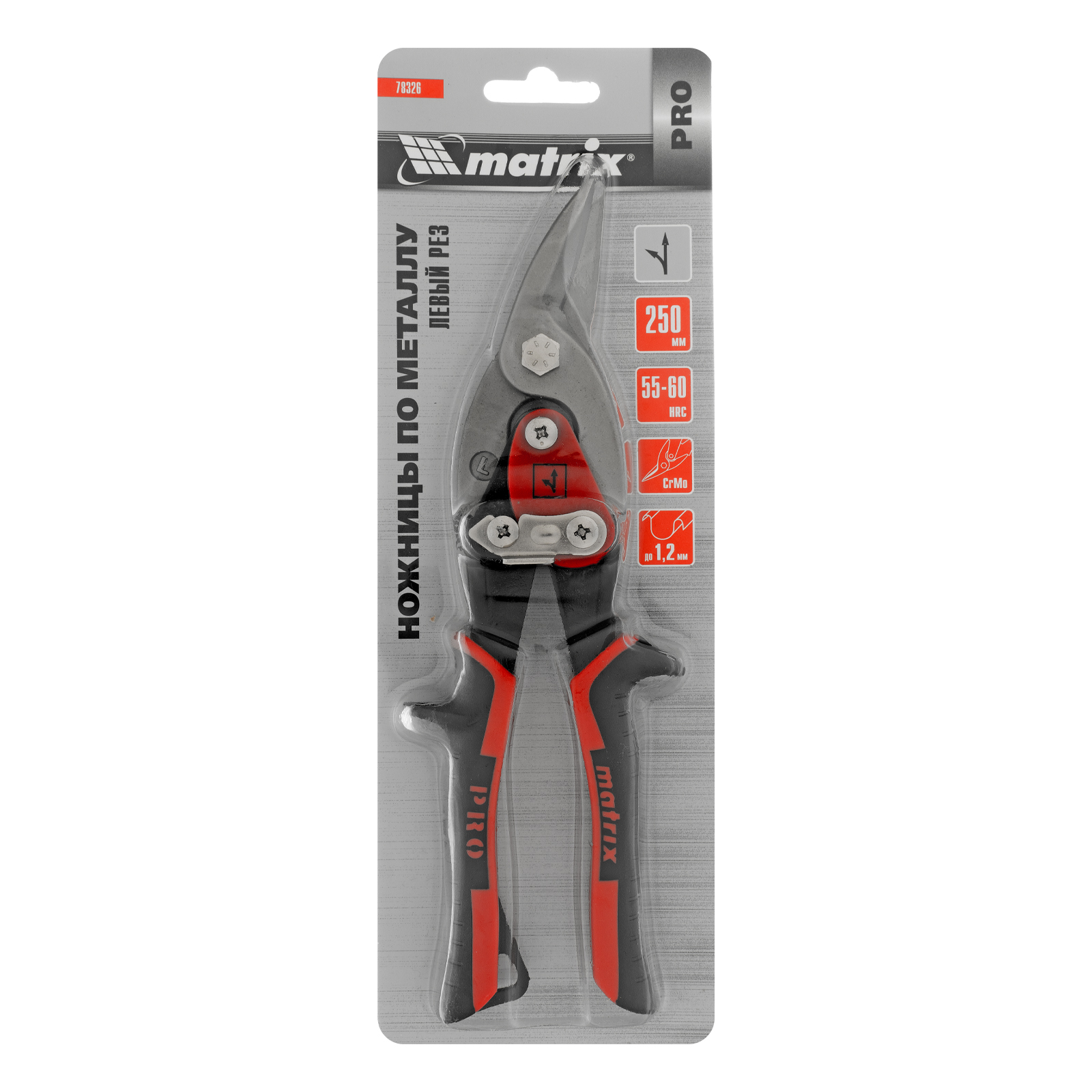 Ножницы по металлу, 250 мм, левый рез, сталь CRMO, двухкомпонентные рукоятки, PRO Matrix в Москве