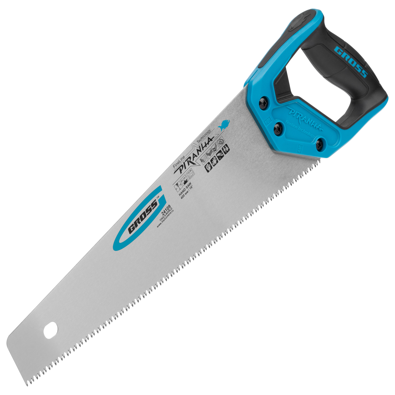 Ножовка по дереву Gross PIRANHA 24109 с полотном длиной 400 мм, калеными зубьями с 3D-заточкой и шагом 7-8 TPI, 2-компонентной рукояткой, используется для распиливания древесины, МДФ, ДСП, ДВП, ламината, а также пенополистирола, полиуретана и других пластических материалов. Подходит для продольного и поперечного пиления. Зубья имеют универсальный шаг 7-8 TPI, поэтому ножовка подходит для решения широкого спектра задач. Трехгранная заточка зубьев обеспечивает максимальную производительность и высокое качество пиления. Ножовка предназначена для столярных и плотницких работ, пригодится во время ремонта и будет полезна в быту.