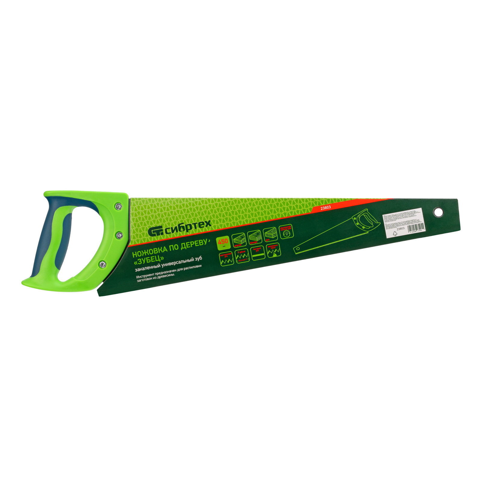Ножовка по дереву Сибртех «Зубец» 23803 с полотном длиной 450 мм, калеными зубьями с 2D-заточкой и шагом 7-8 TPI, с двухкомпонентной рукояткой, используется для распиливания заготовок из древесины, фанеры и ДСП. Рабочая часть, содержащая 7-8 зубьев на дюйм, обеспечивает быстрый двусторонний рез. Режущую кромку можно перетачивать при необходимости. Ножовка будет полезна столяру, плотнику и домашнему мастеру.