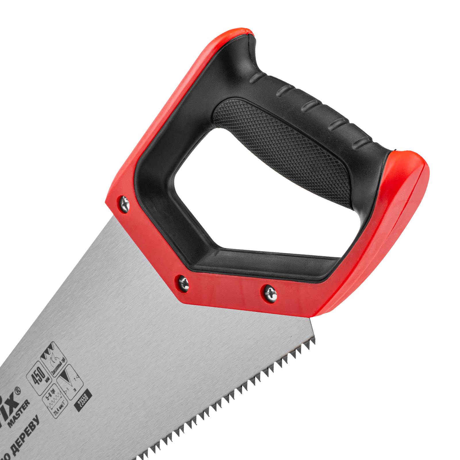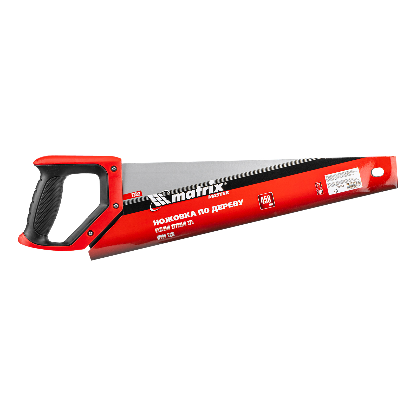 Ножовка по дереву Matrix 23558 с полотном длиной 450 мм, с крупными калеными зубьями с шагом 5-6 TPI и 2D-заточкой, с двухкомпонентной рукояткой, используется для быстрой продольной или поперечной распиловки древесины. Высокая скорость работы достигается благодаря крупным зубьям с волновой заточкой и универсальным шагом 4-5 мм. Двухгранная заточка зубьев дает возможность пилить в направлении как от себя, так и на себя, а также перетачивать режущую кромку при необходимости. Ножовка подходит для выполнения плотницких и хозяйственных работ.