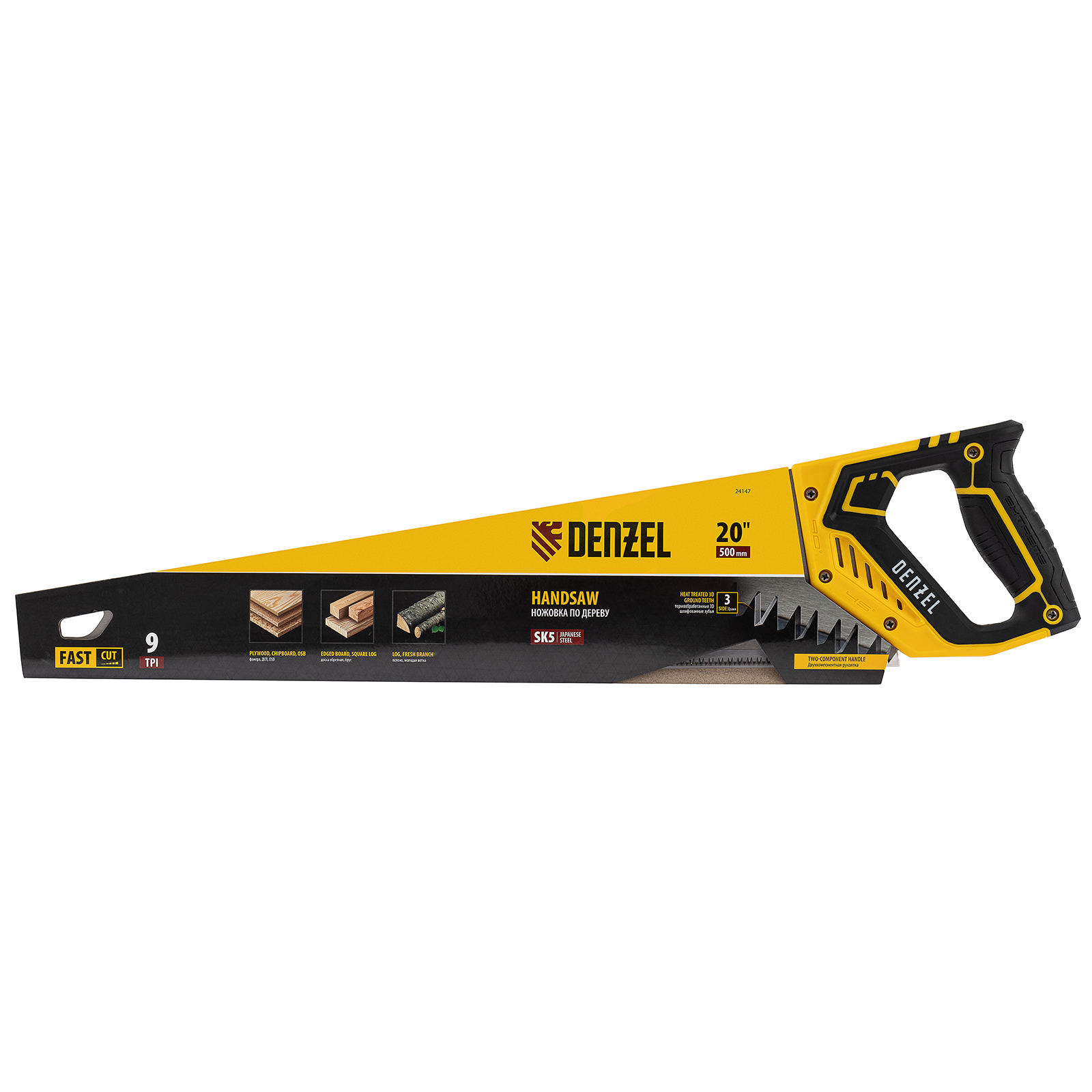 Ножовка по дереву, 500 мм, 9 TPI, зуб 3D, двухкомпонентная рукоятка Denzel в Москве