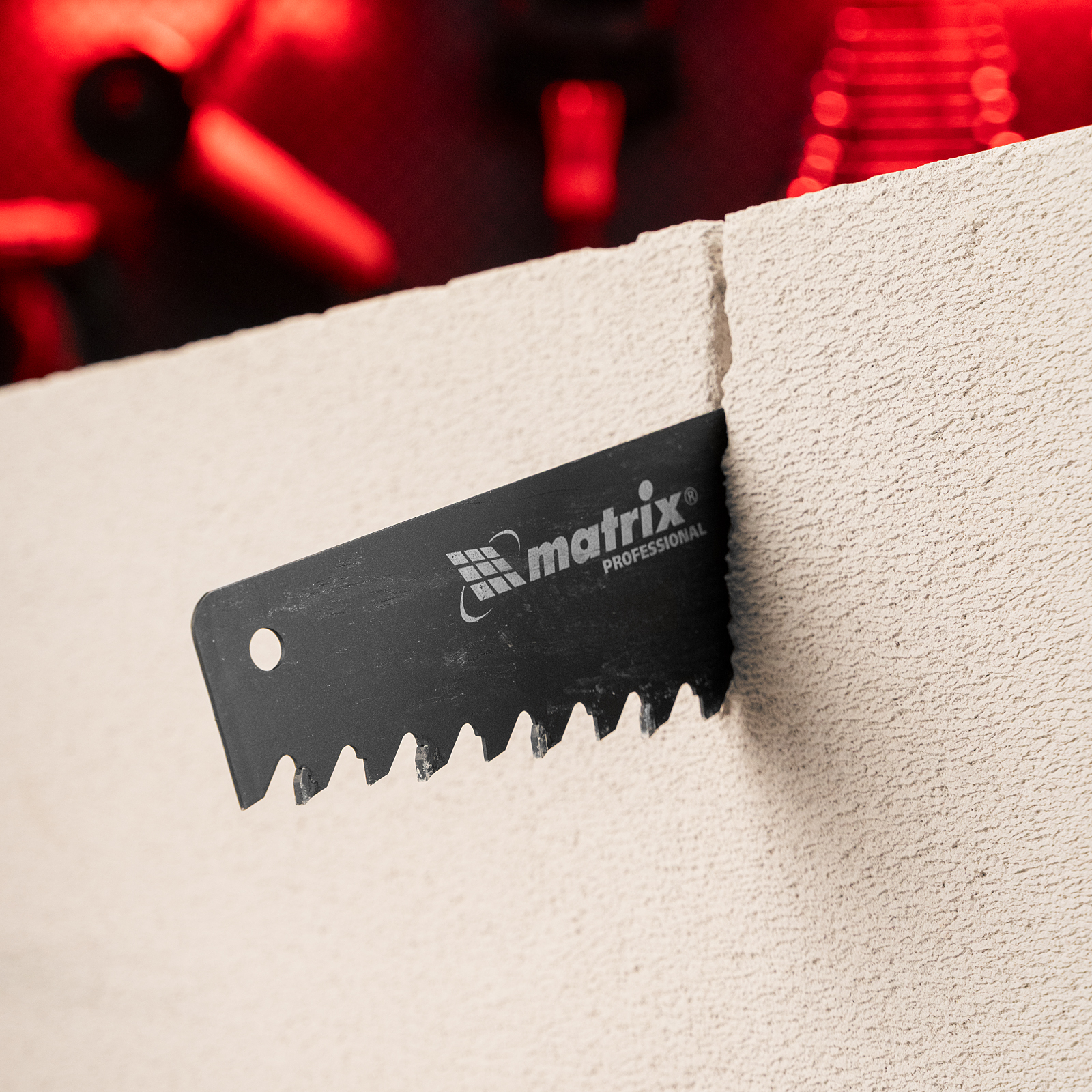 Ножовка по пенобетону Matrix 23380 с полотном длиной 500 мм, с защитным покрытием, с твердосплавными напайками на зубьях и 2-компонентной рукояткой, предназначена для распиливания пеноблоков. Зубья с шагом 38 мм имеют напайки из карбида вольфрама, заточенные под специальным углом, что обеспечивает эффективность работы с твердым материалом. Ножовка используется во время строительства различных сооружений.