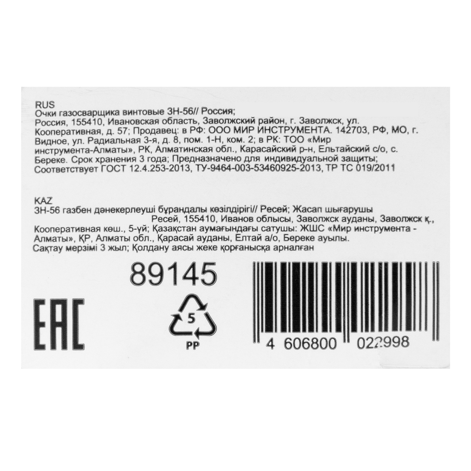 Винтовые очки газосварщика 3H-56 89145 — средство индивидуальной защиты глаз, предохраняющее их от светового и теплового излучения, а также искр и брызг раскаленного металла. Резиновый уплотнитель обеспечивает плотное прилегание оправы к лицу и позволяет добиться максимальной защиты. Очки используются в промышленности, а также во время строительства и ремонта.