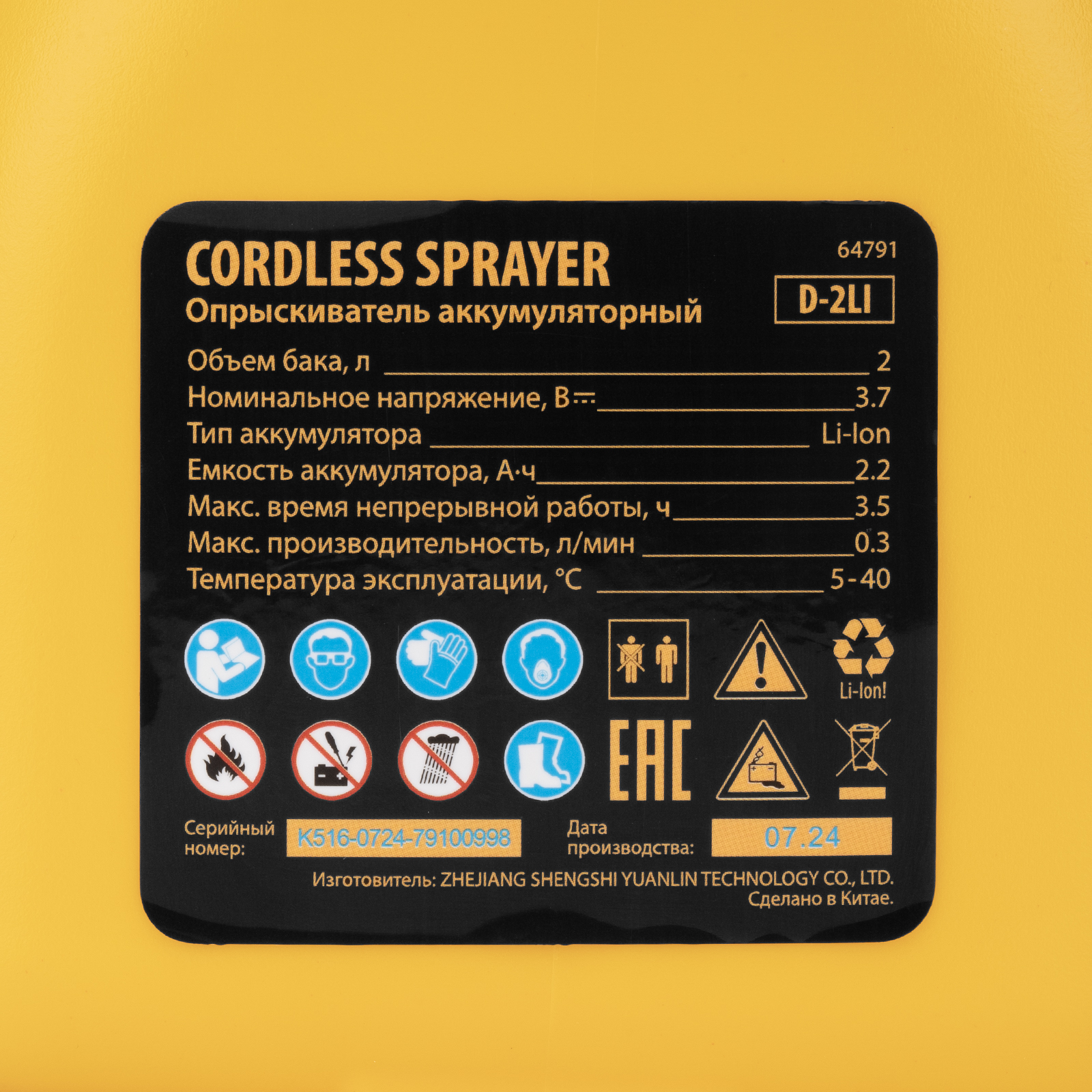 Опрыскиватель аккумуляторный D-2LI, 2 л, 3,7 В, 2,2 Ач Denzel в Москве