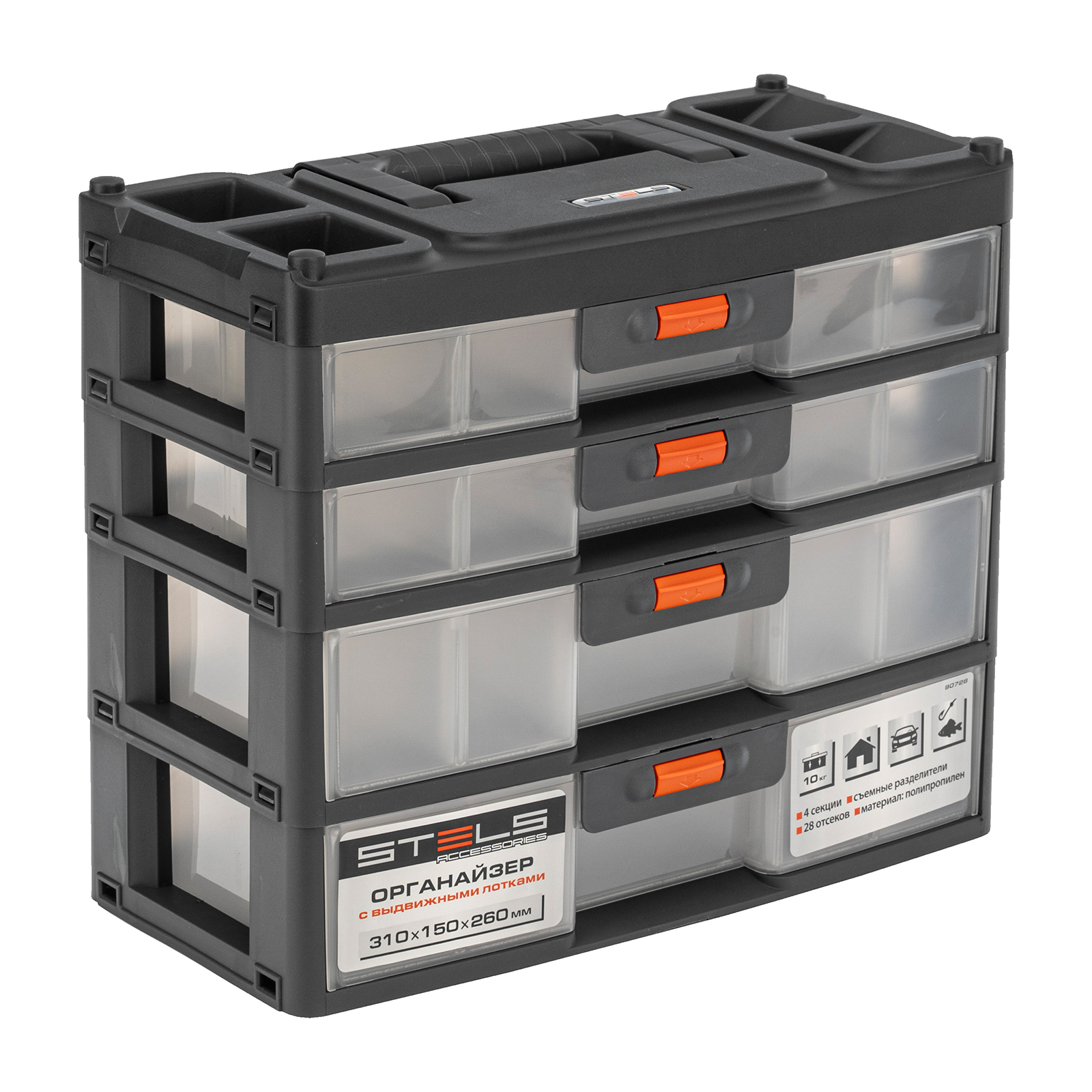 Органайзер для хранения с выдвижными лотками 310х150х260мм, 4 секции, пластик Stels в Москве