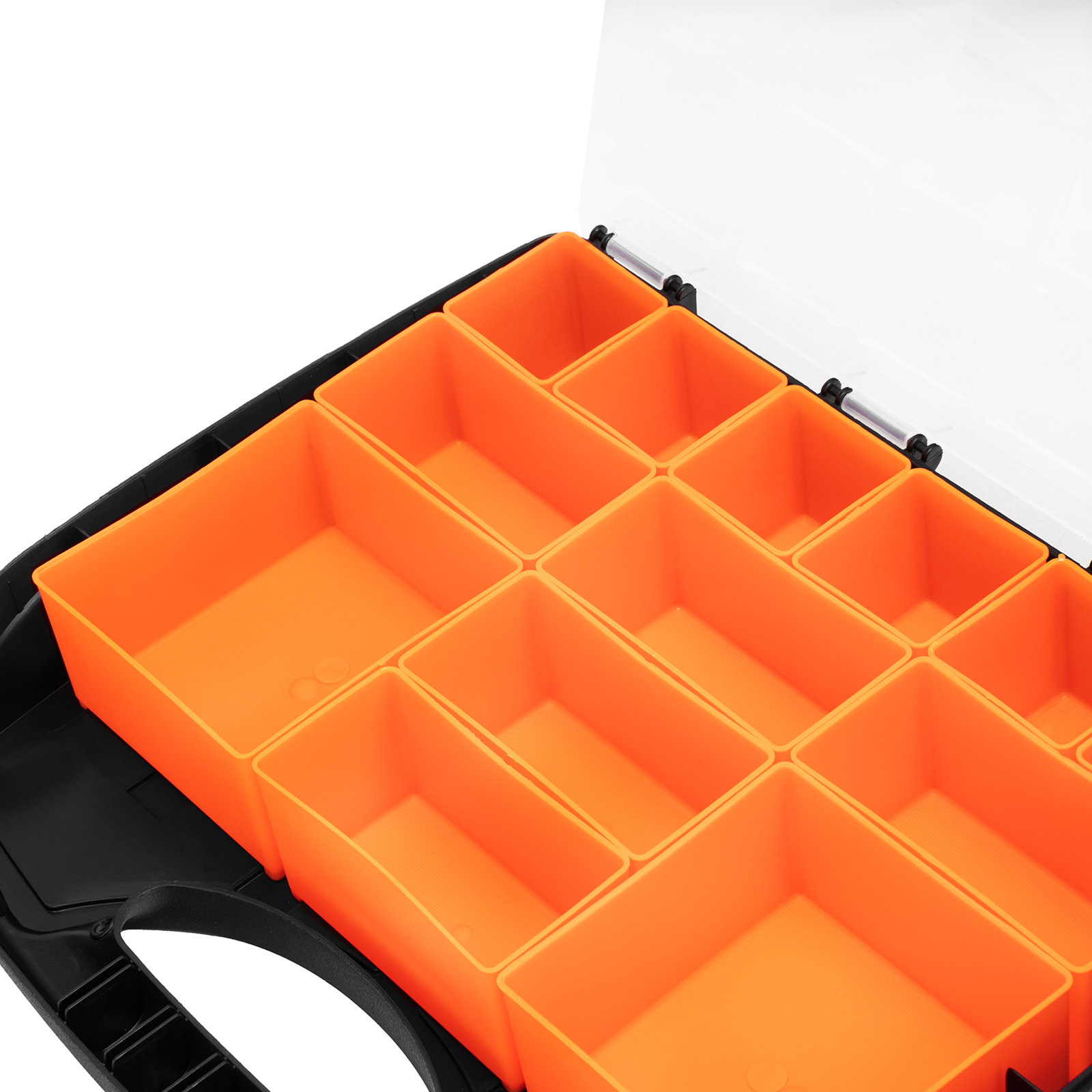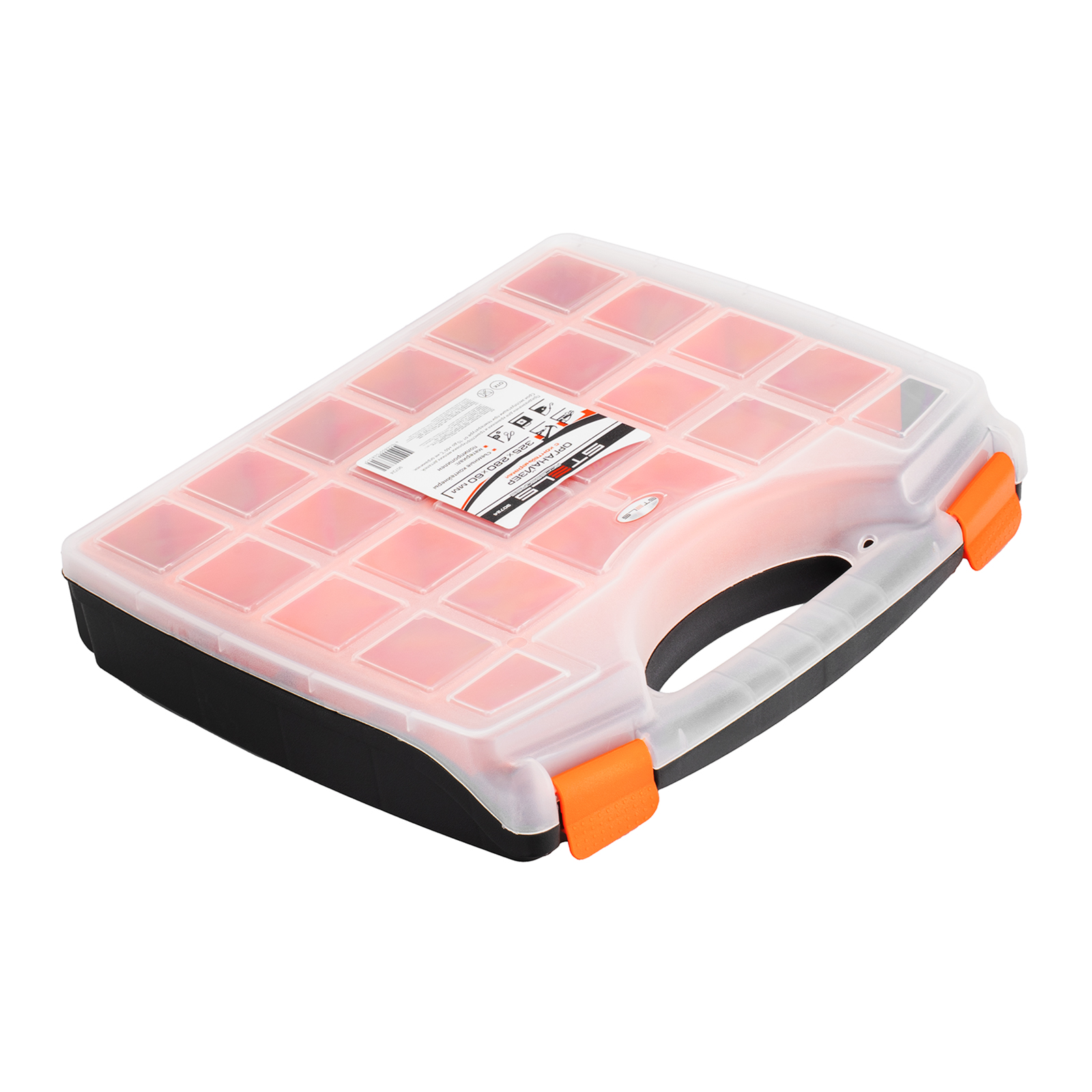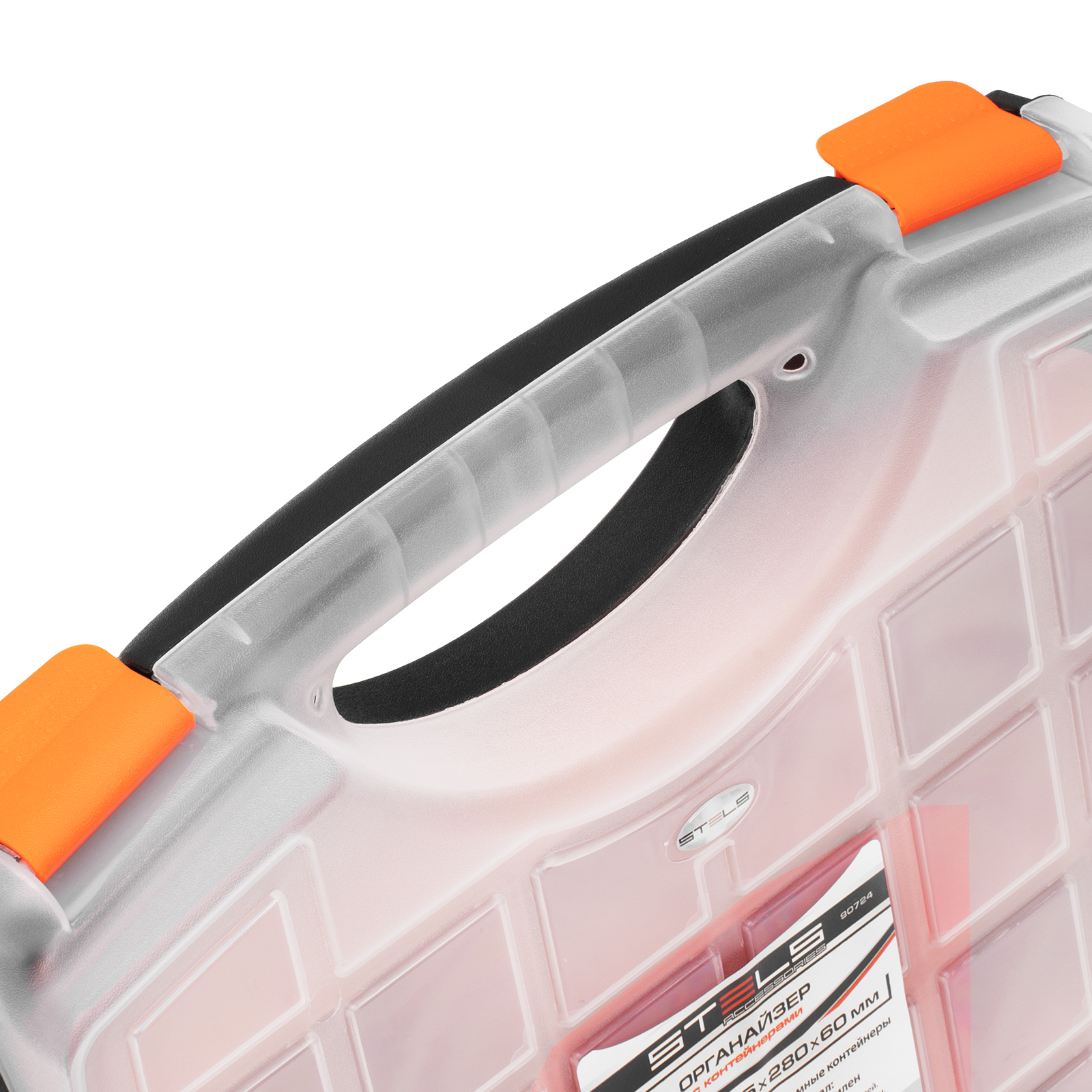 - Защелки и ручка обеспечивают удобство транспортировки органайзера.