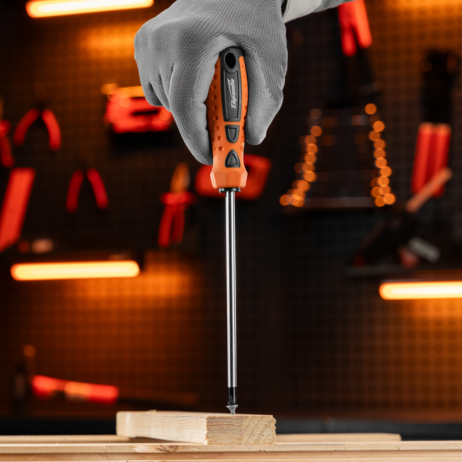Отвертка Sparta «Point» 11780 из стали CrV, с 2-х компонентной рукояткой, подходит для монтажа/демонтажа крестового крепежа PH2. Она поможет мастерам провести мелкие бытовые работы в доме или автомастерской. Отвертка оснащена стержнем длиной 150 мм для работы на поверхностях и в углублениях.