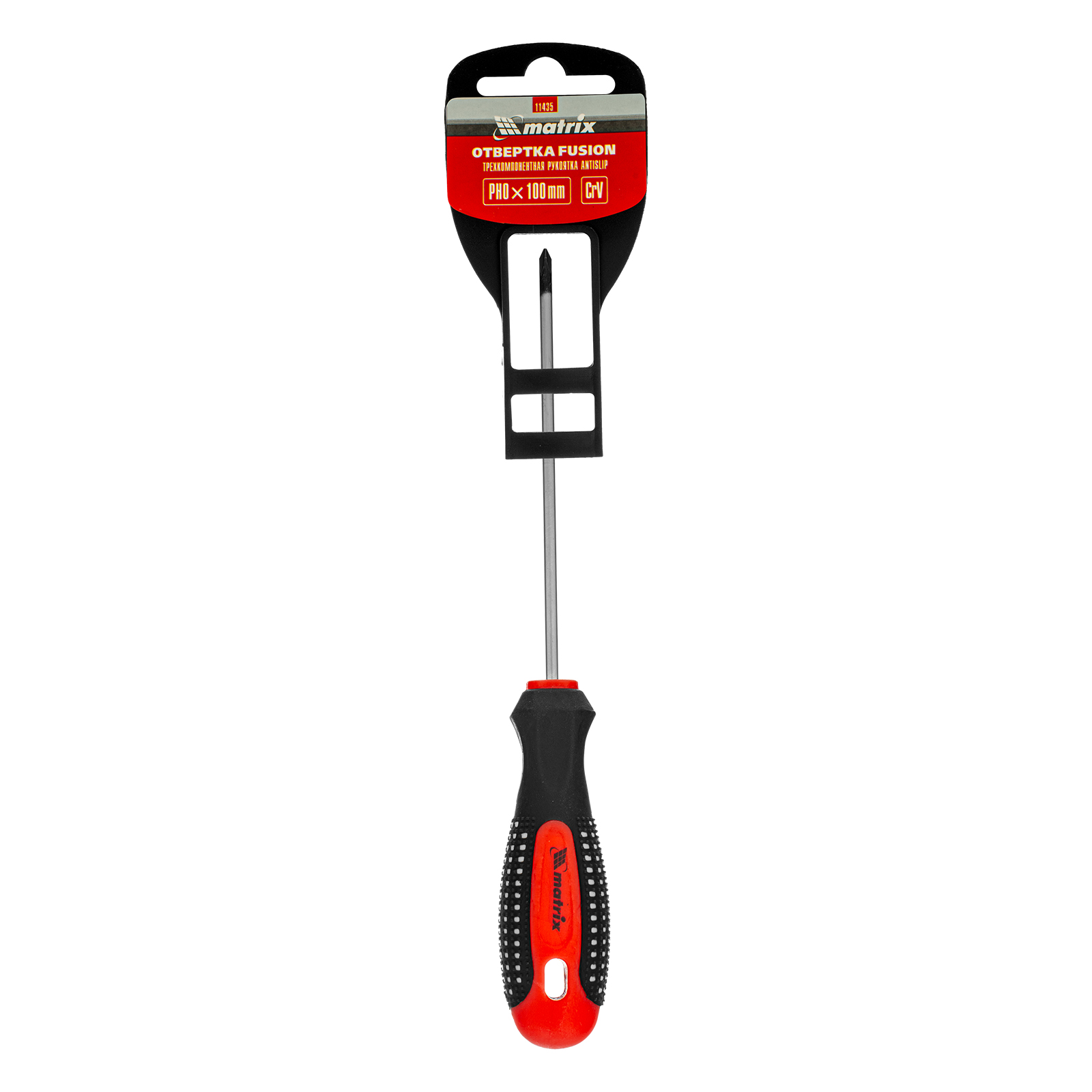 Отвертка Fusion, PH0 х 100 мм, CrV, трехкомпонентная рукоятка "Anti slip" Matrix в Москве