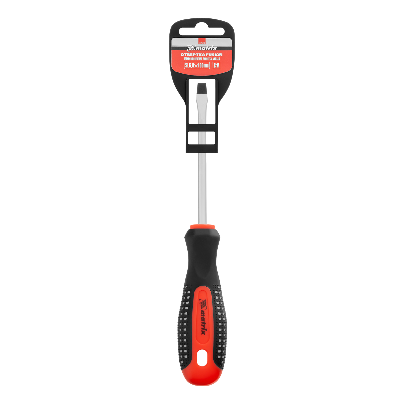 Отвертка Fusion, SL6 х 100 мм, CrV, трехкомпонентная рукоятка "Anti slip" Matrix в Москве