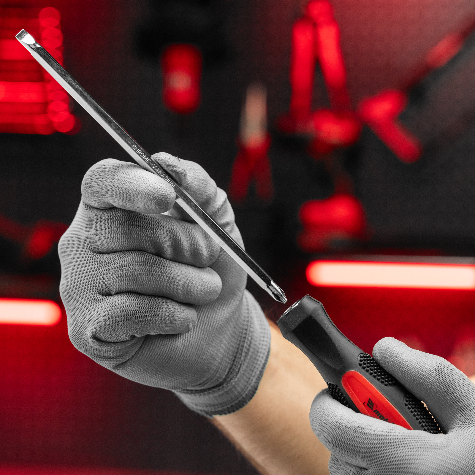 - Стержень отвертки изготовлен из легированной стали CrV, поэтому отличается прочностью и долговечностью.