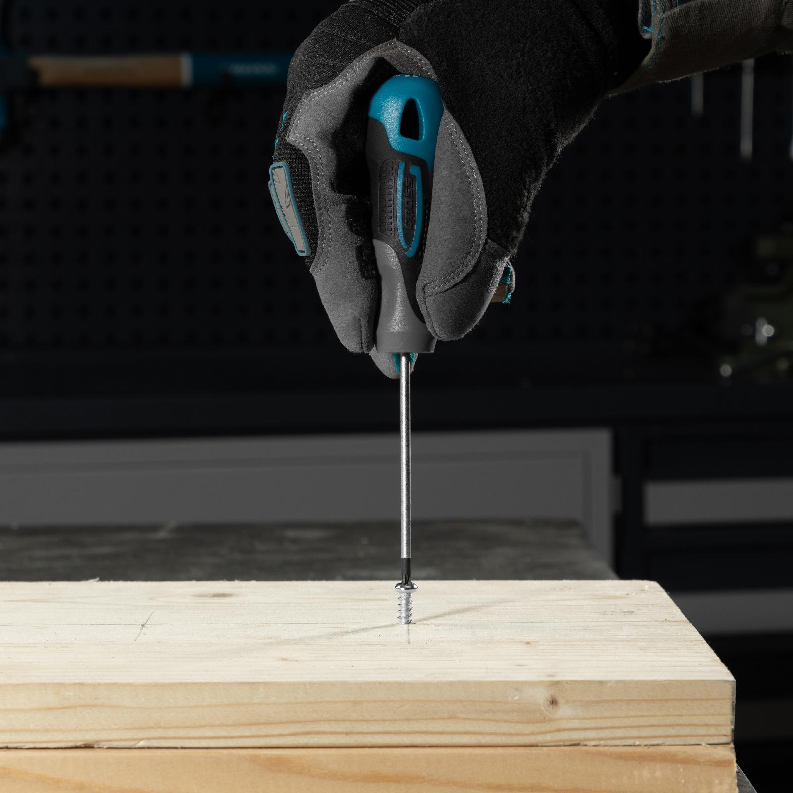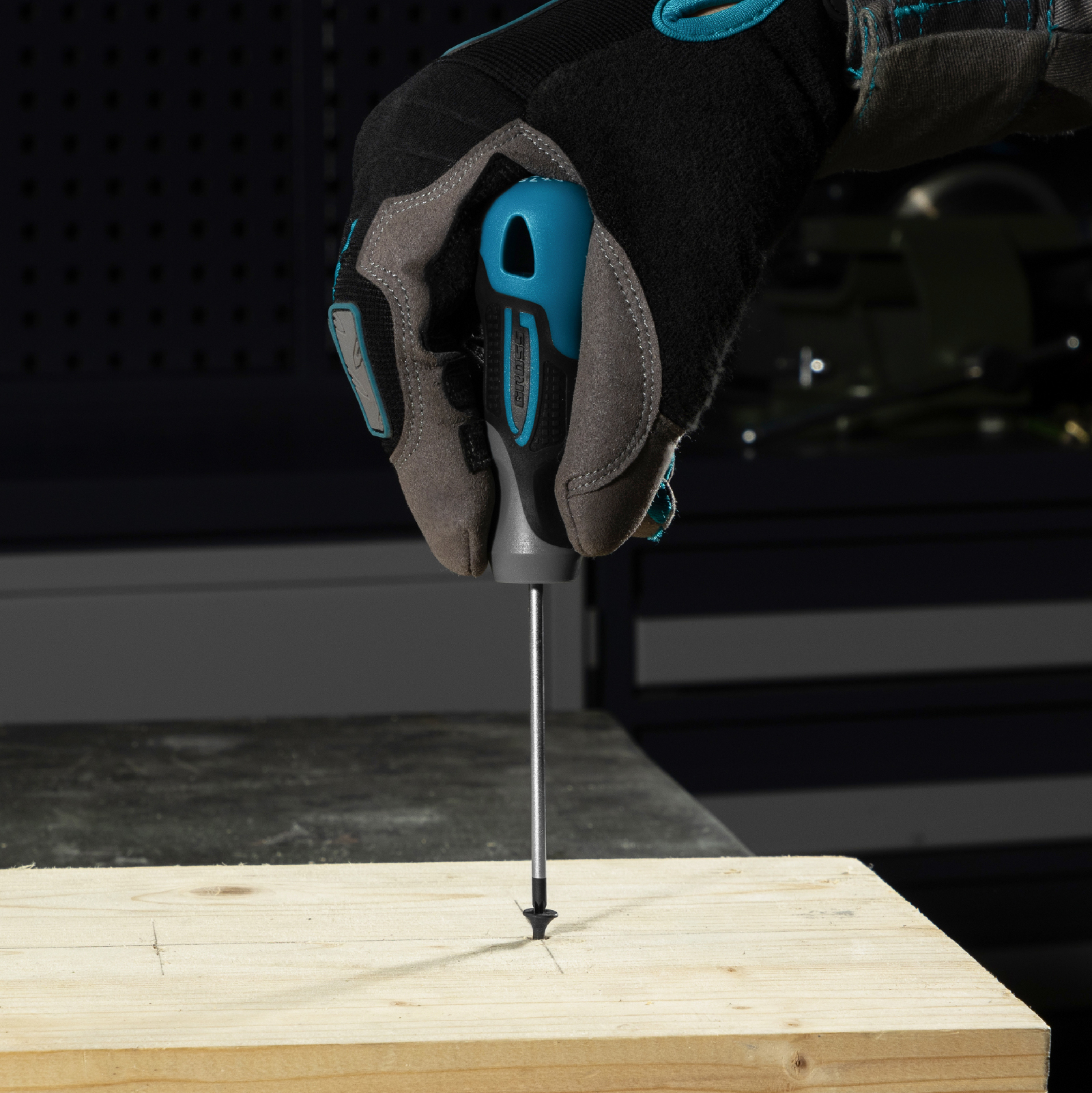 - Для удобства работы на затыльнике рукоятки и стержне обозначены тип шлица и длина стержня.