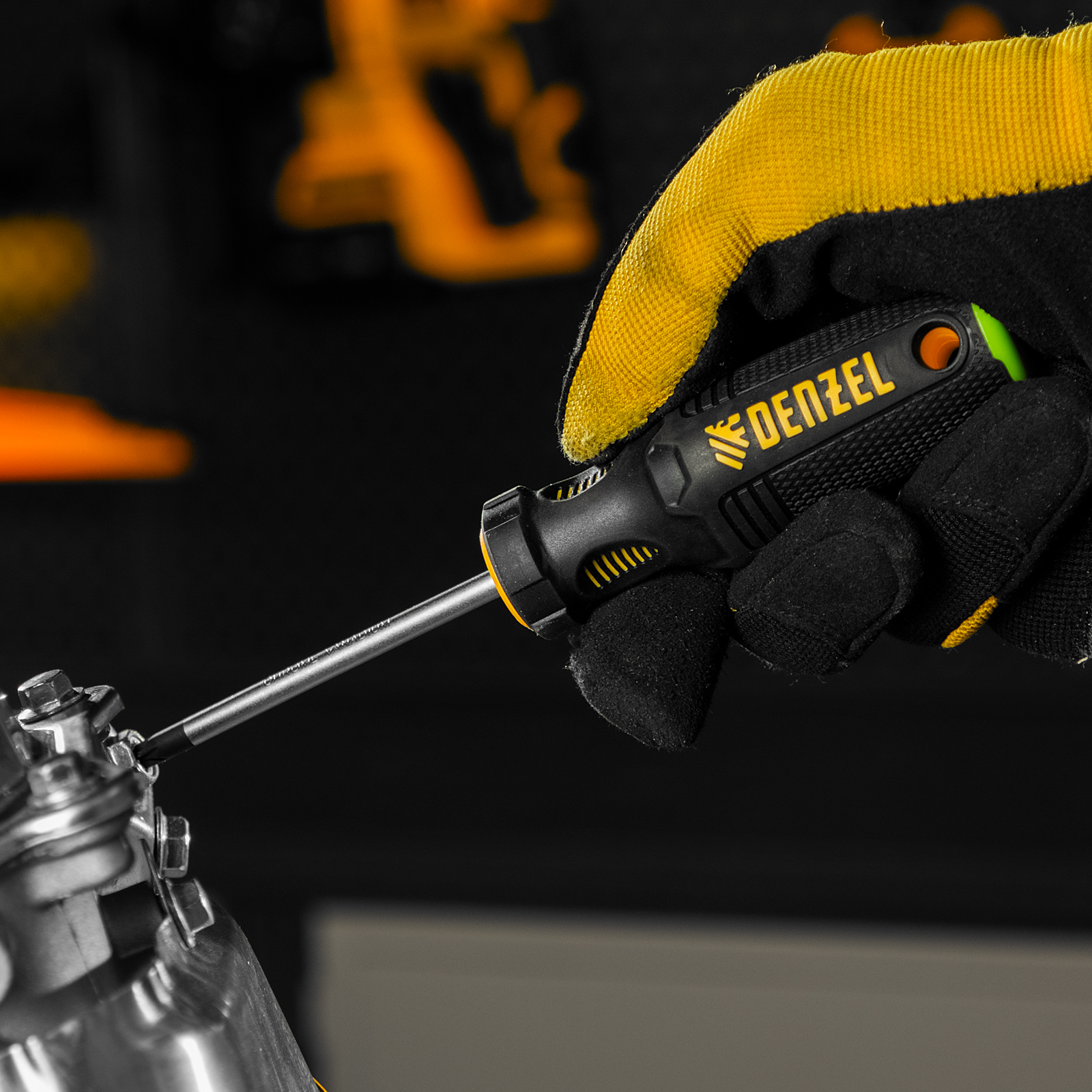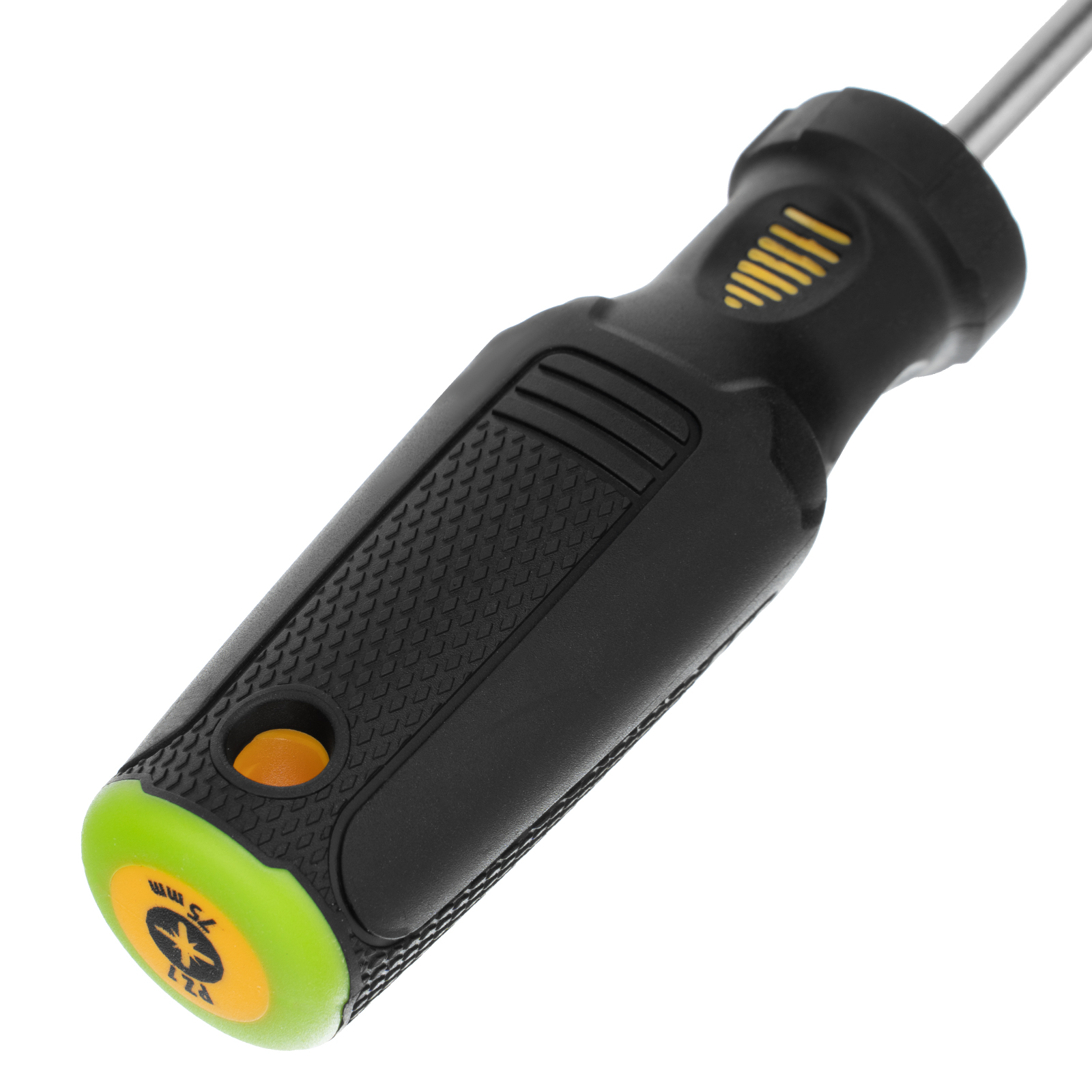 - Продуманная маркировка — цветное кольцо на затыльнике соответствует типоразмеру отвертки, что облегчает поиск нужного инструмента.