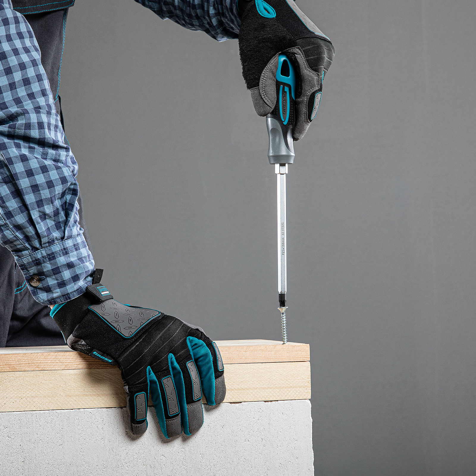 Отвертка Gross 12163, PZ3 x 150 мм, из стали S2, с трехкомпонентной рукояткой, пригодится для монтажа и демонтажа крепежных элементов типа Pozidriv. За счет крестового шлица с 4 дополнительными насечками крепеж не проскальзывает, что обеспечивает высокую точность работы. Стержень длиной 150 мм подходит для работы с крепежом на поверхностях и в углублениях. Отвертка выдерживает интенсивные нагрузки и рассчитана на профессиональное использование.
