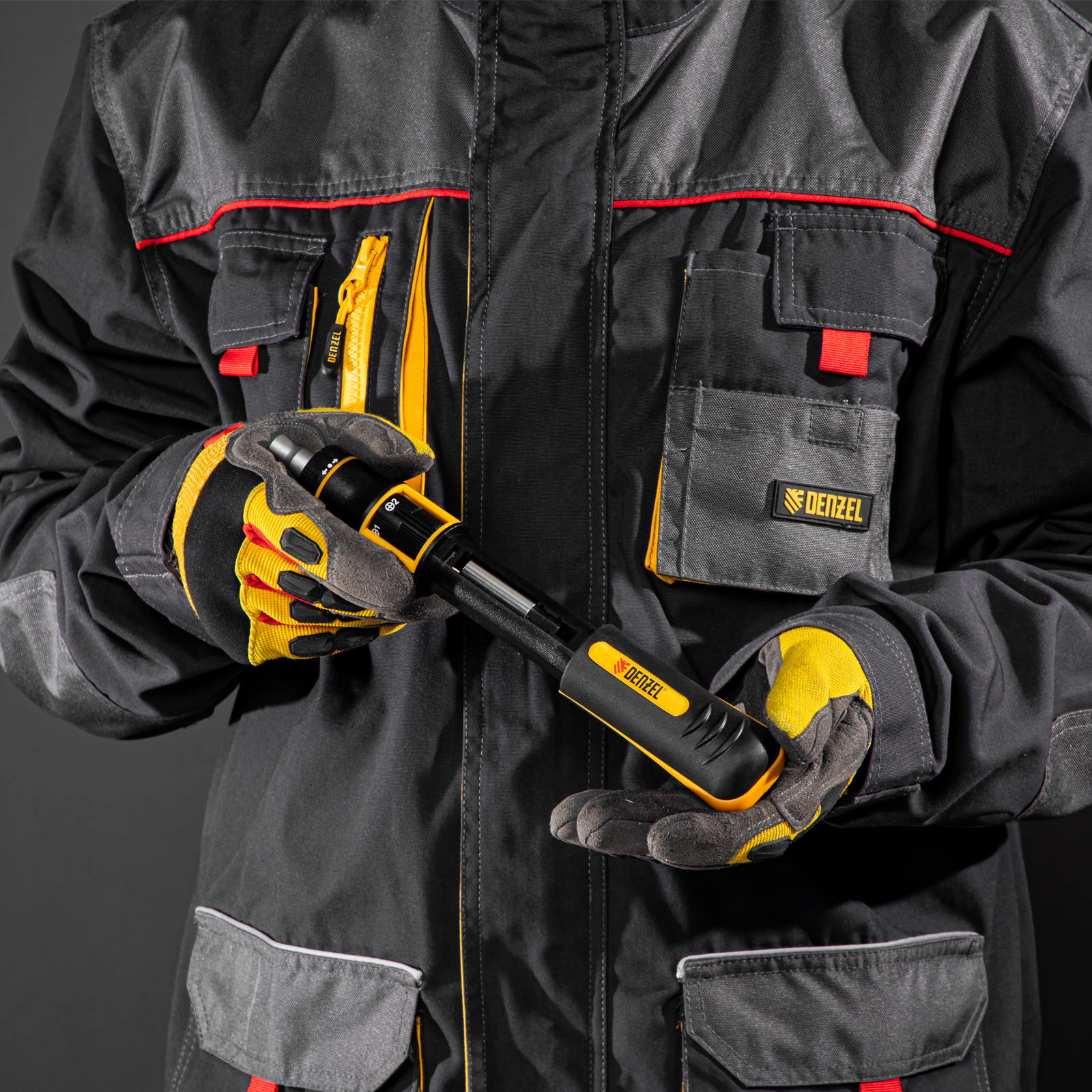 Отвертка реверсивная с револьверным механизмом, 11 шт, сталь S2 Denzel в Москве