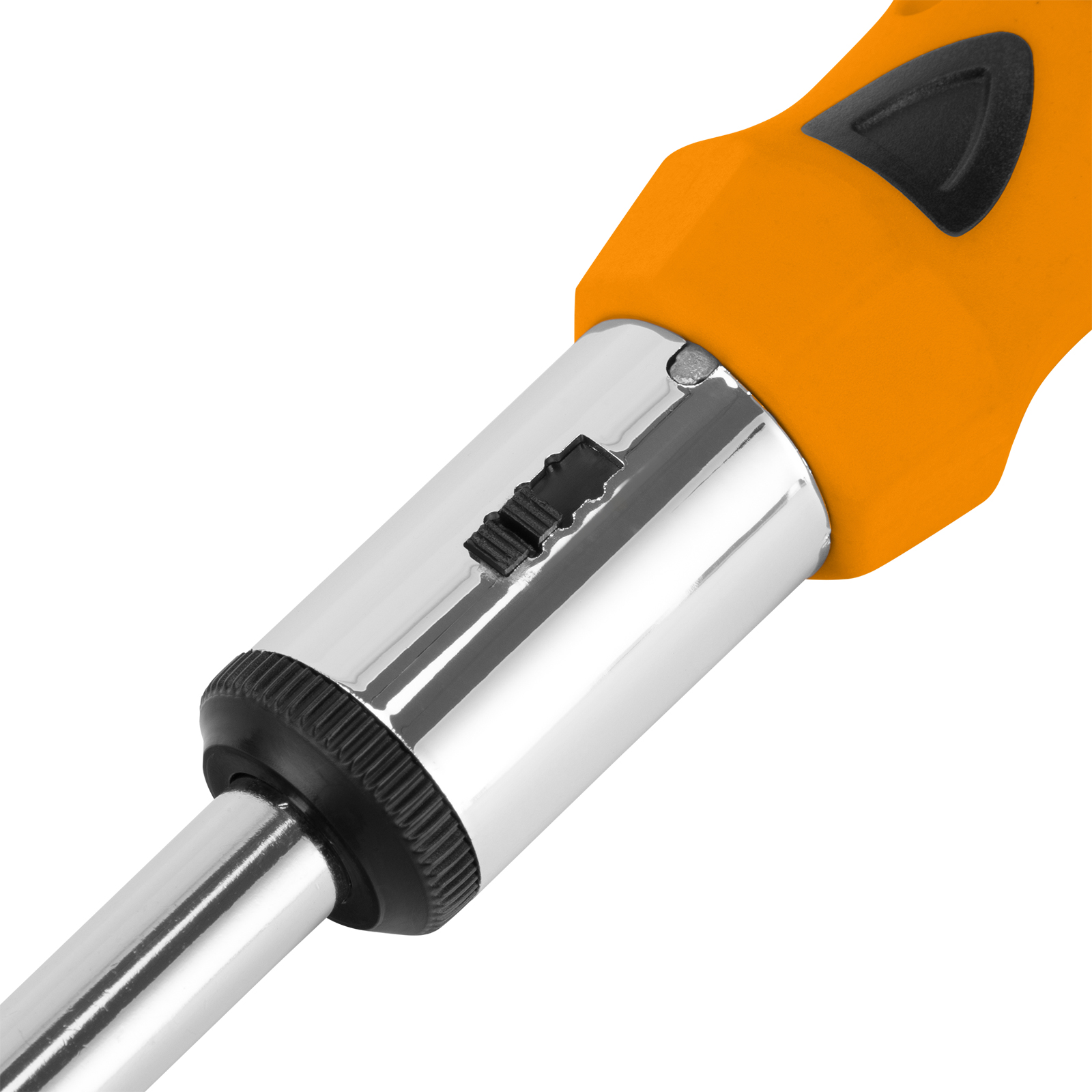 Реверсивная отвертка Sparta 115455 с набором бит из стали CrV, входит в комплект из 10 предметов и используется для закручивания и откручивания резьбовых крепежей. Храповый механизм позволяет обойтись без перехватывания ручки и переставления шлица, что значительно ускоряет и упрощает работу. В наборе 9 бит самых популярных размеров со шлицами SL, PH, PZ. Комплект рекомендован для бытового применения и будет полезен при сборке мебели, ремонте бытовой техники, пригодится также и в гараже.