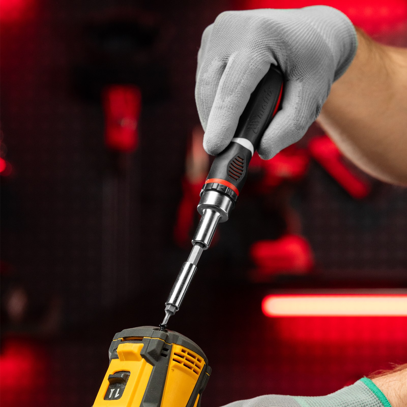- Простая замена вышедших из строя насадок — отвертка совместима с битами всех производителей.