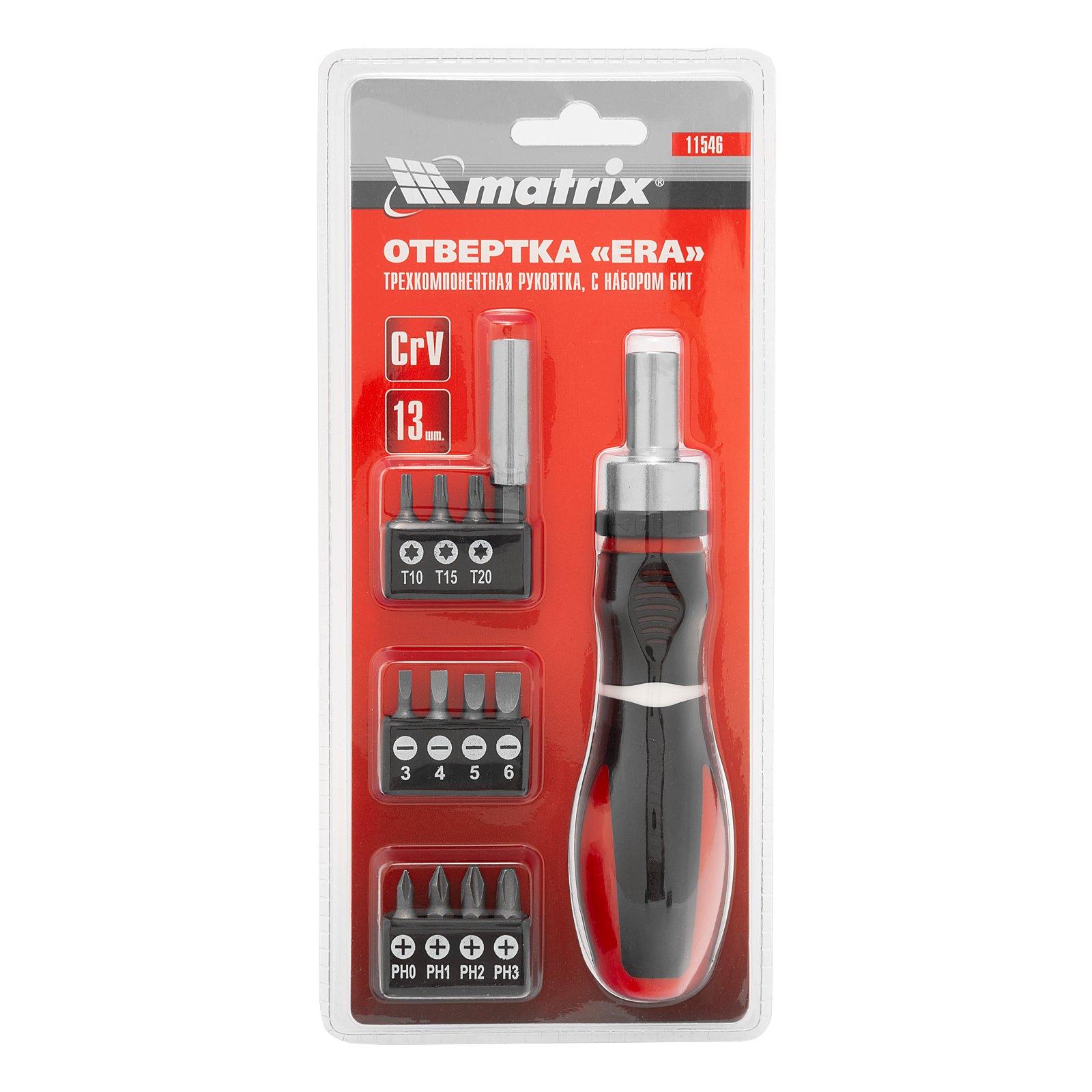 Отвертка реверсивная, набор бит, 12 шт, CrV Matrix в Москве