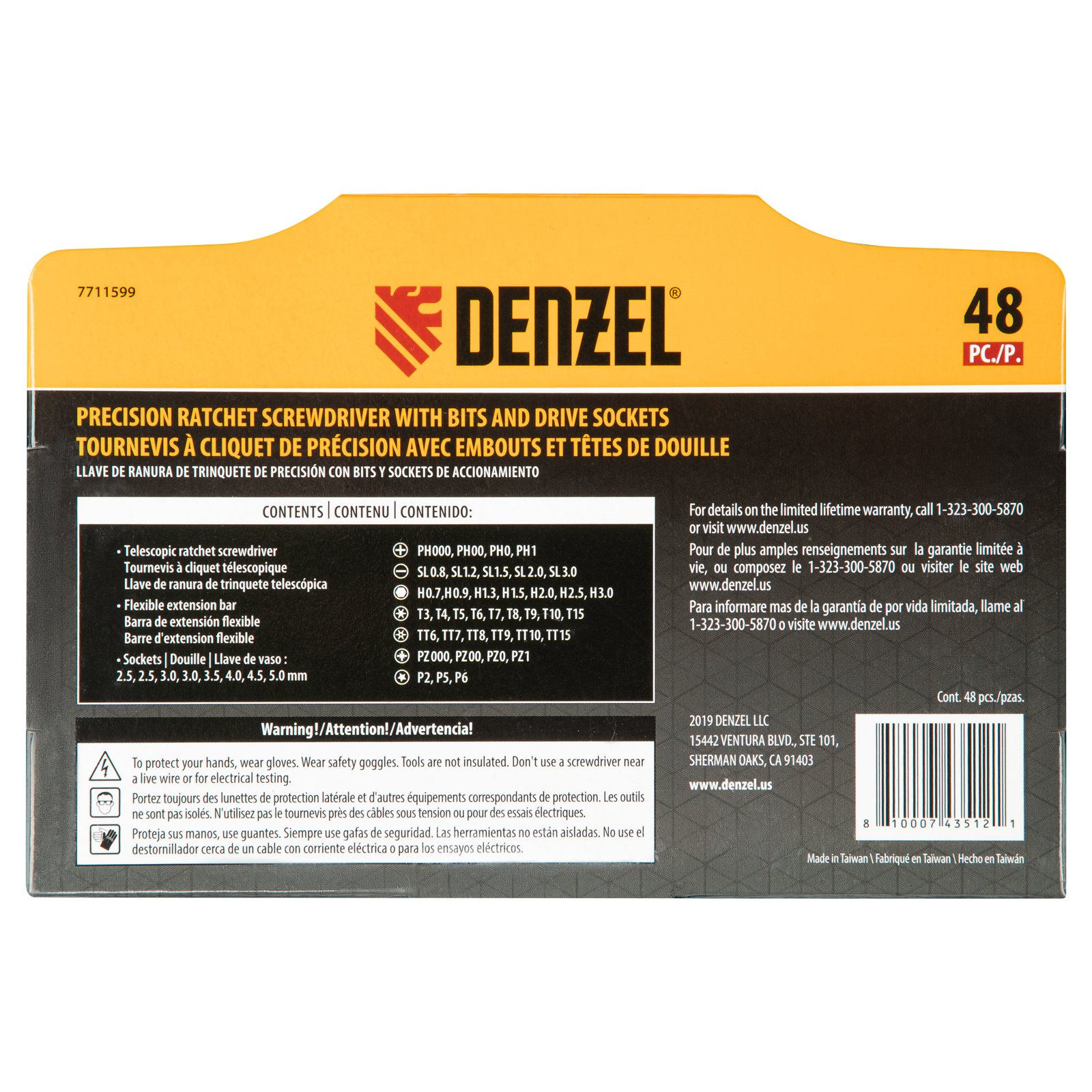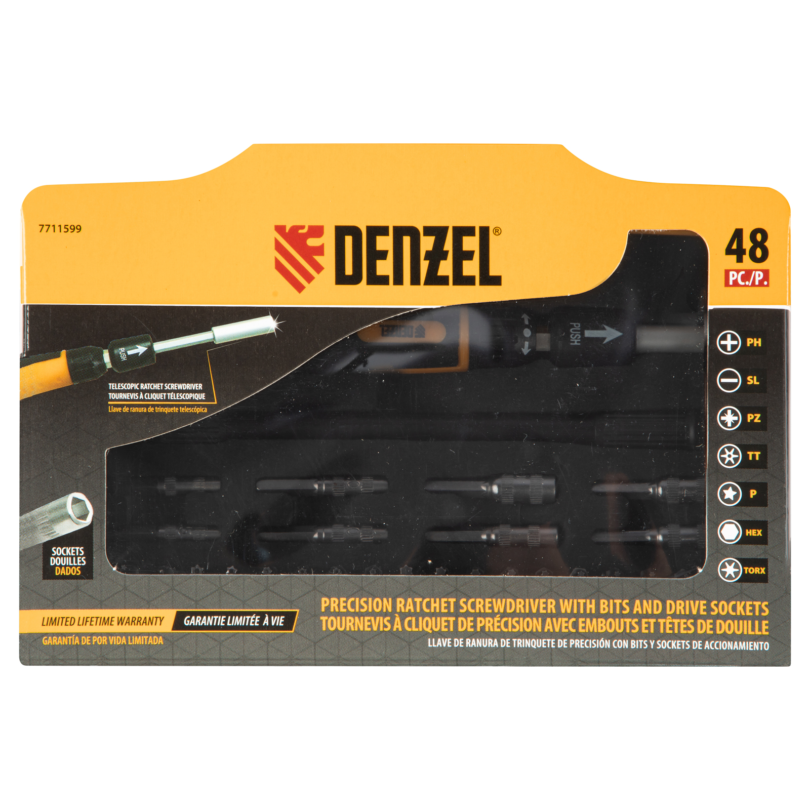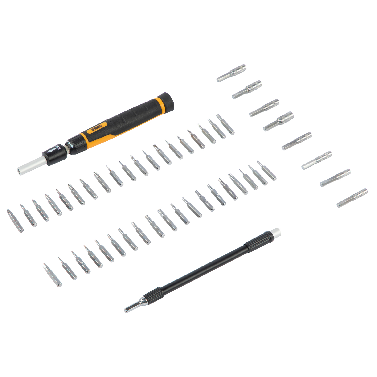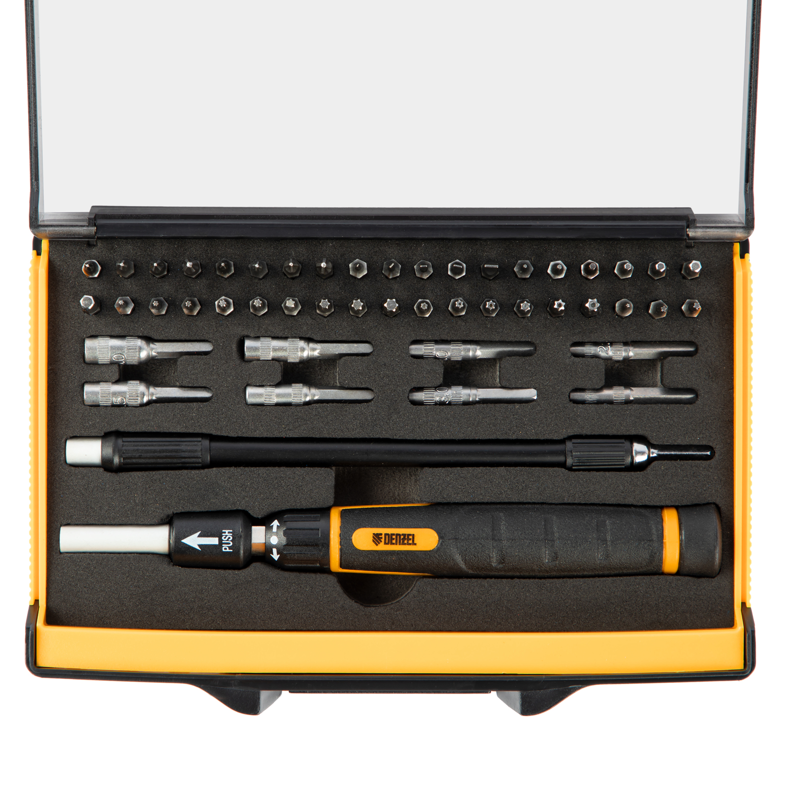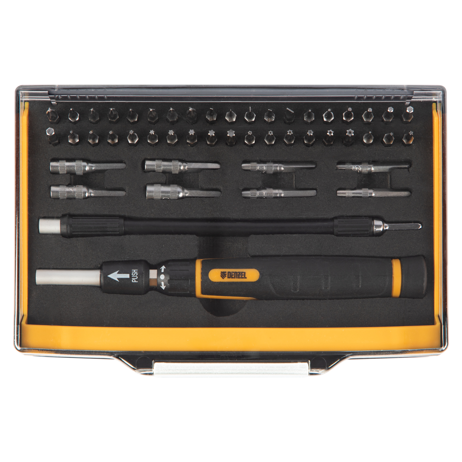 Отвертка с набором бит и торцевых головок для точных работ, гибкий привод, 48 шт, CrMo Denzel в Москве