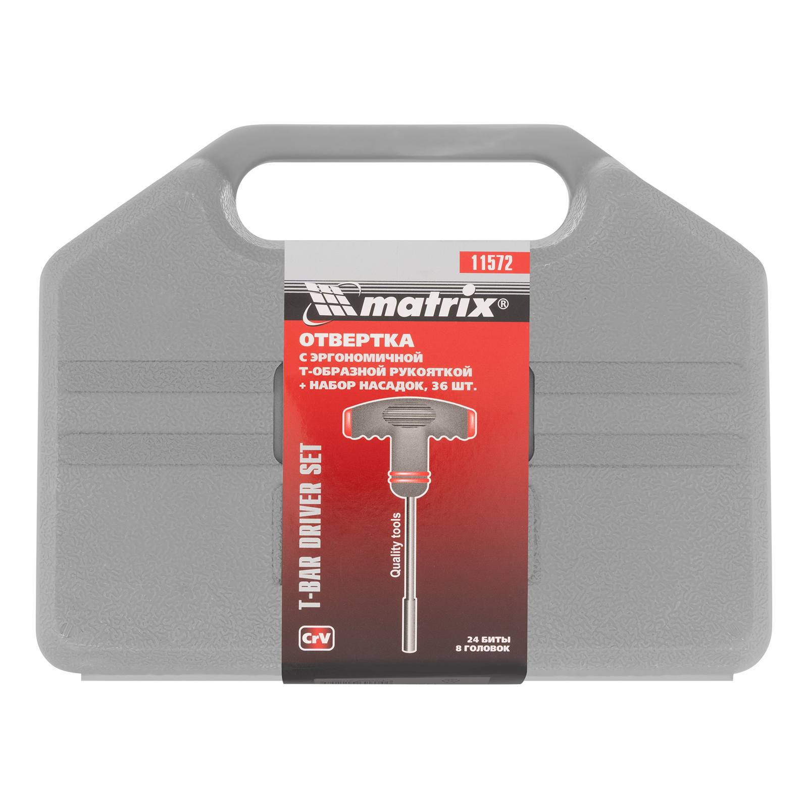 Отвертка с Т-образной эргономичной ручкой и набором насадок, 36 шт, CrV, пластиковый бокс Matrix в Москве