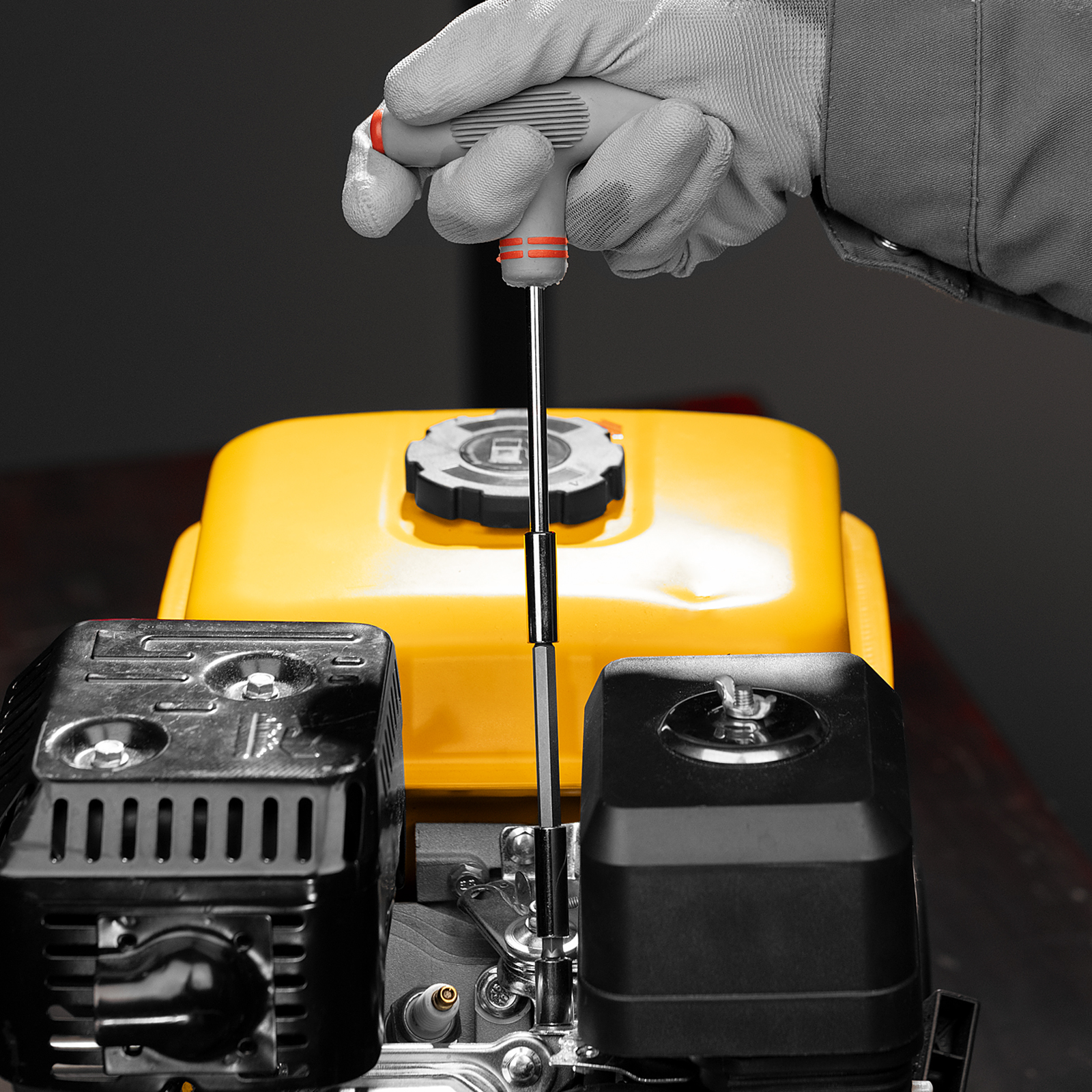 - Т-образная рукоятка позволяет увеличить крутящий момент, экономя при этом время мастера.