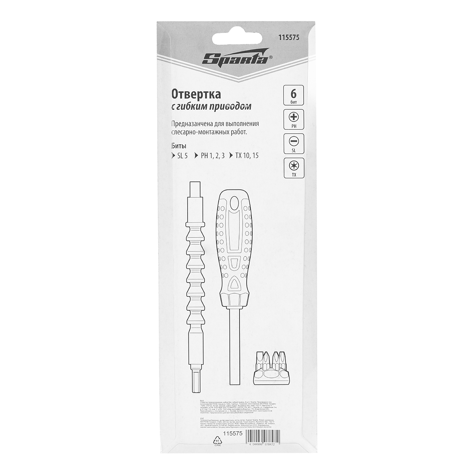 Отвертка телескопическая, набор бит, гибкий привод, 8 шт, Sparta в Москве