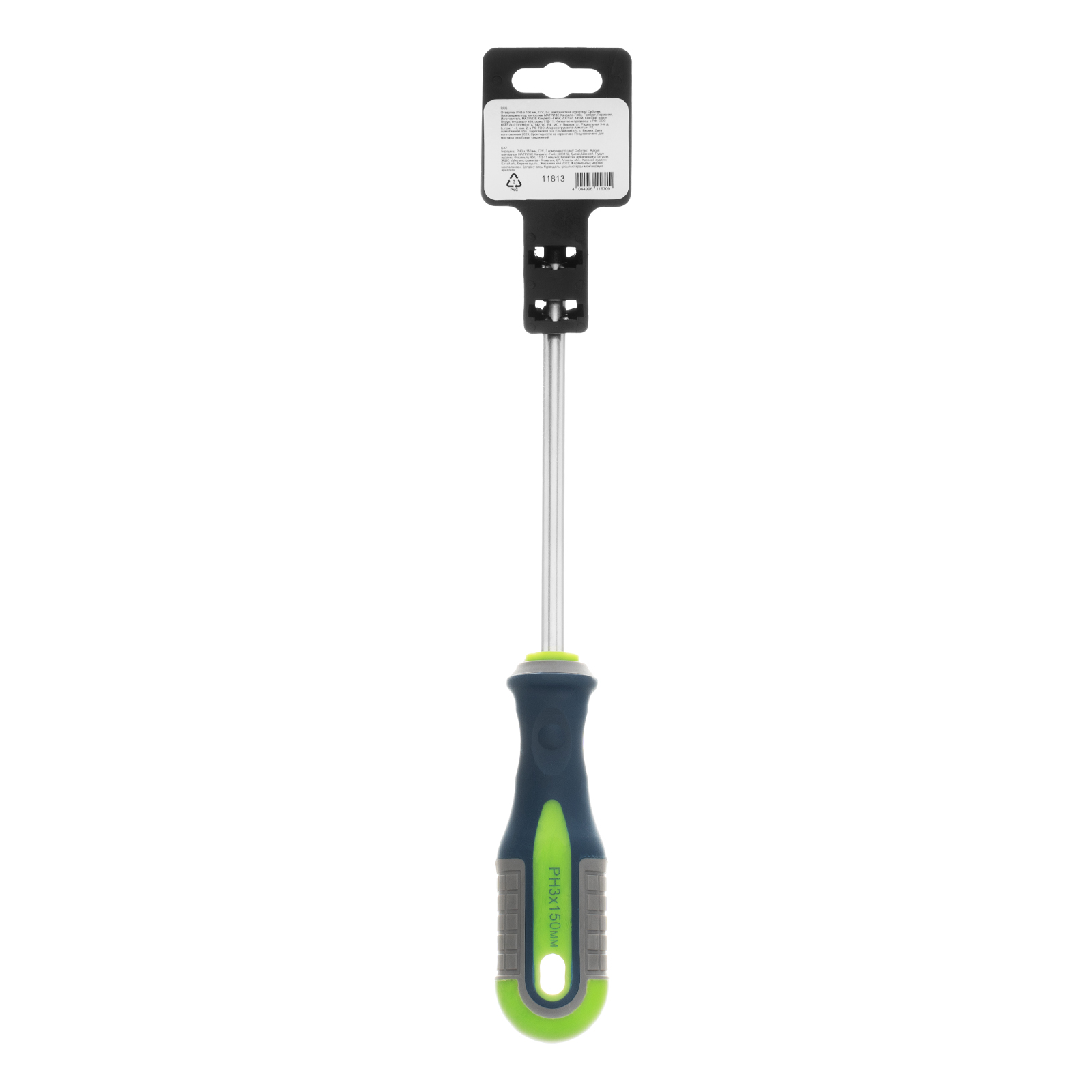Отвертка Сибртех 11813, PH3 х 150 мм, из стали CrV, с 3-х компонентной рукояткой, пригодится частным мастерам для монтажа/демонтажа крепежных элементов типоразмера PH3. Она поможет произвести ремонтные и монтажные работы дома, в гараже, на даче. Благодаря стержню длиной 150 мм отверткой можно работать в углублениях.