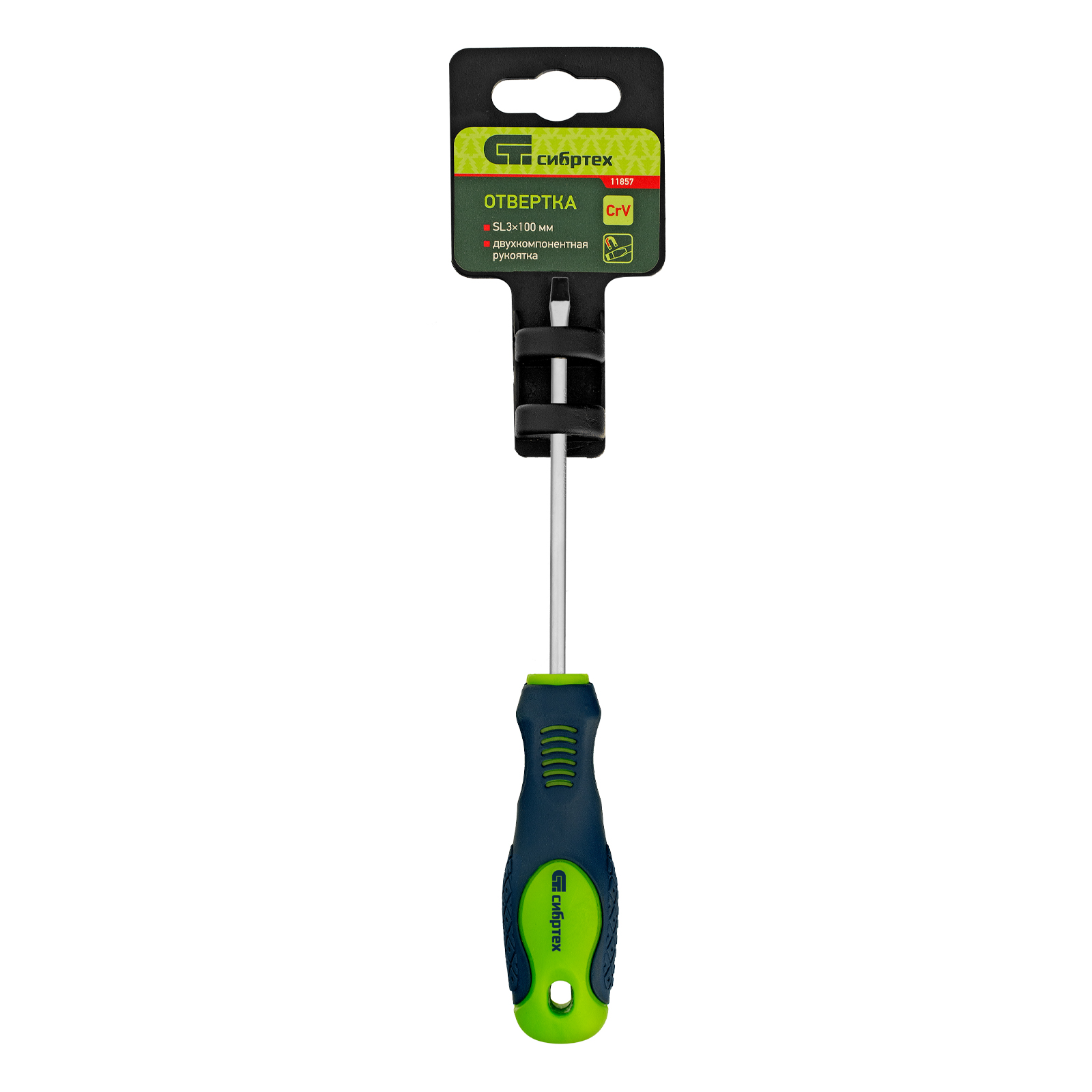 Отвертка, SL3 х 100 мм, CrV, двухкомпонентная рукоятка Сибртех в Москве