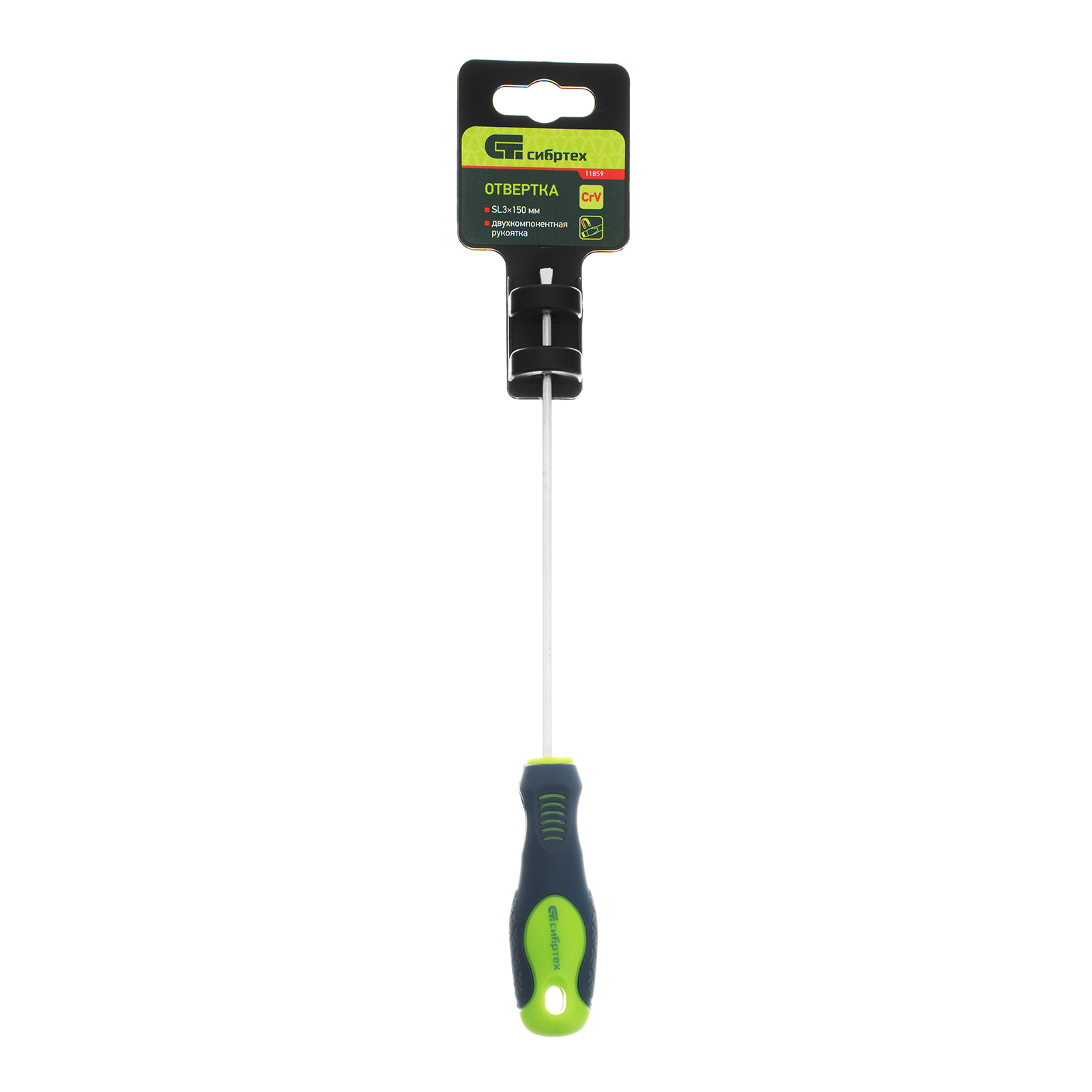 Отвертка, SL3 х 150 мм, CrV, двухкомпонентная рукоятка Сибртех в Москве