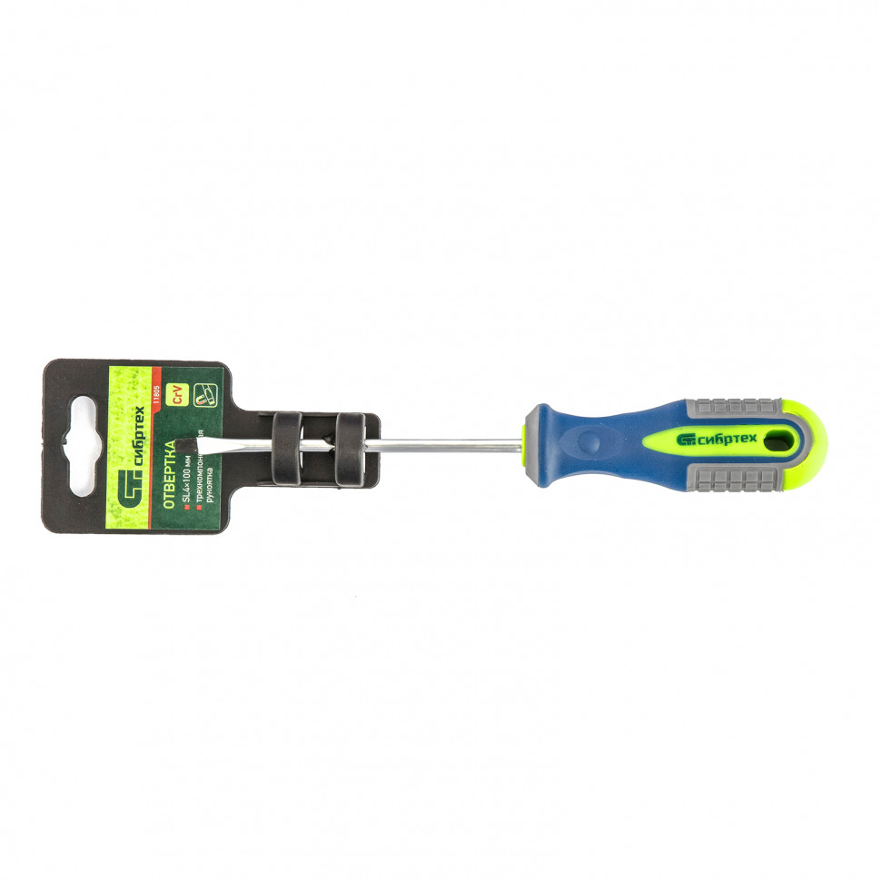 Отвертка, SL4 х 100 мм, CrV, трехкомпонентная рукоятка Сибртех в Москве