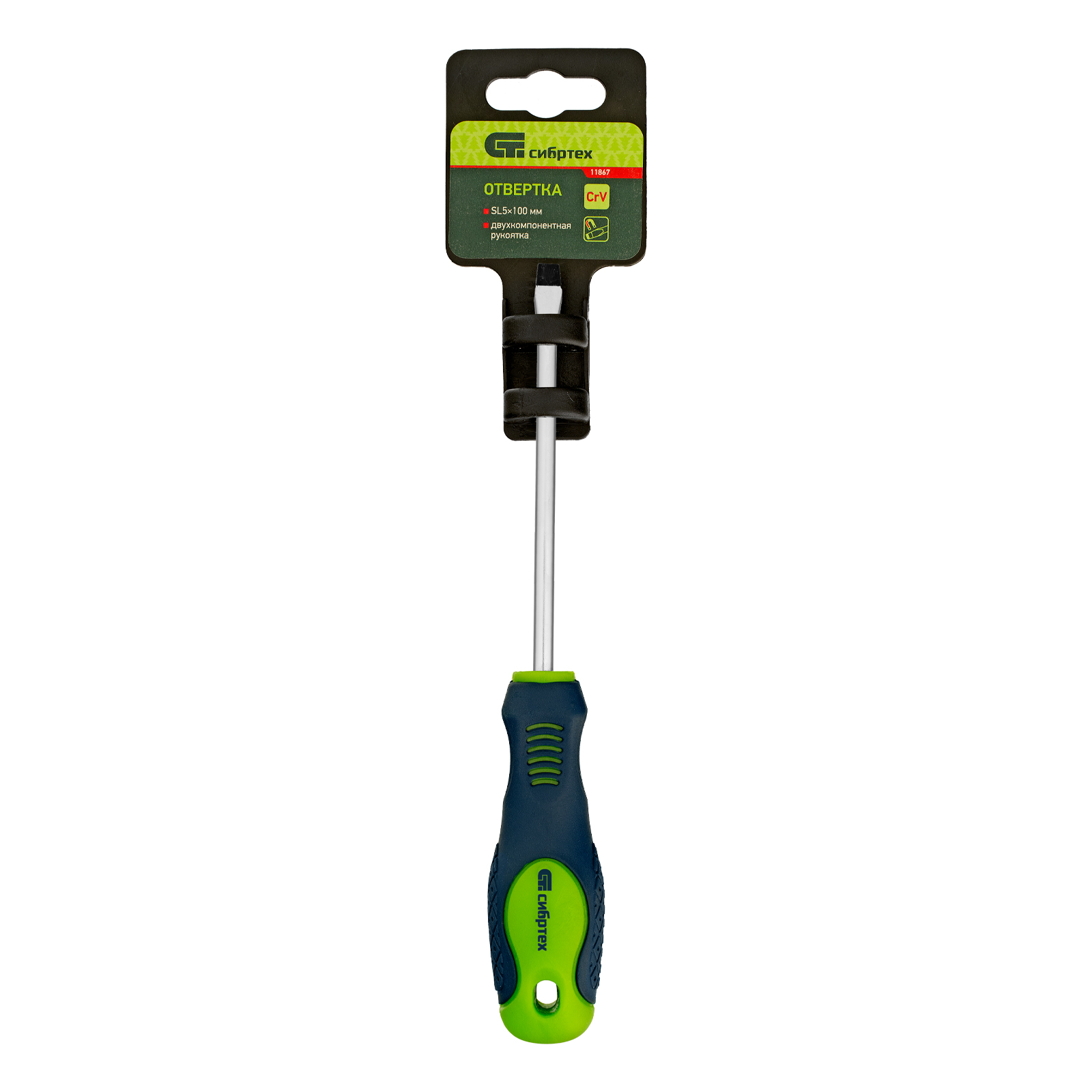 Отвертка, SL5 х 100 мм, CrV, двухкомпонентная рукоятка Сибртех в Москве