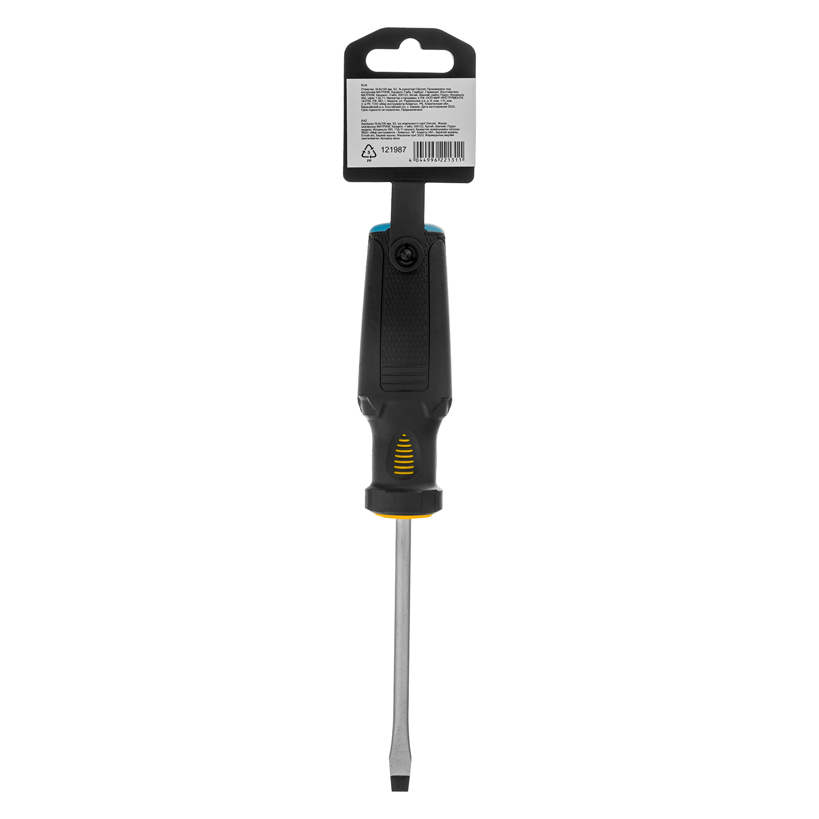 Отвертка Denzel 121987 с трехкомпонентной рукояткой, со стержнем из стали S2, длиной 100 мм, предназначена для монтажа и демонтажа винтов и саморезов с прямым шлицем SL6. Высокоточный намагниченный шлиц крепко фиксируется в головке крепежа. Отвертка выдерживает интенсивное применение, предназначена для выполнения профессиональных ремонтных и монтажных работ.