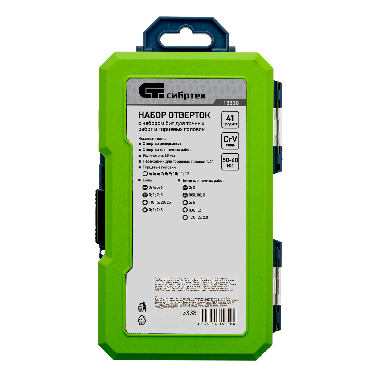Реверсивные отвертки с набором бит и торцевых головок Сибртех 13338 — комплект из 41 предмета из стали CrV, включающий насадки для работы с крепежом типа SL, PH, PZ, HEX, TORX, а также для монтажа/демонтажа гаек, болтов, саморезов с внешним шестигранником. Отвертка и биты для точных работ позволяют отремонтировать мелкую электронику, очки, детские игрушки и т.д. Удлинитель облегчает работу в труднодоступных местах.