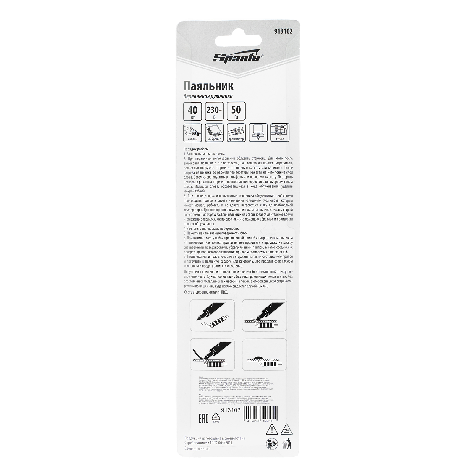Паяльник с ручкой из дерева, 40 Вт, 220 В Sparta в Москве