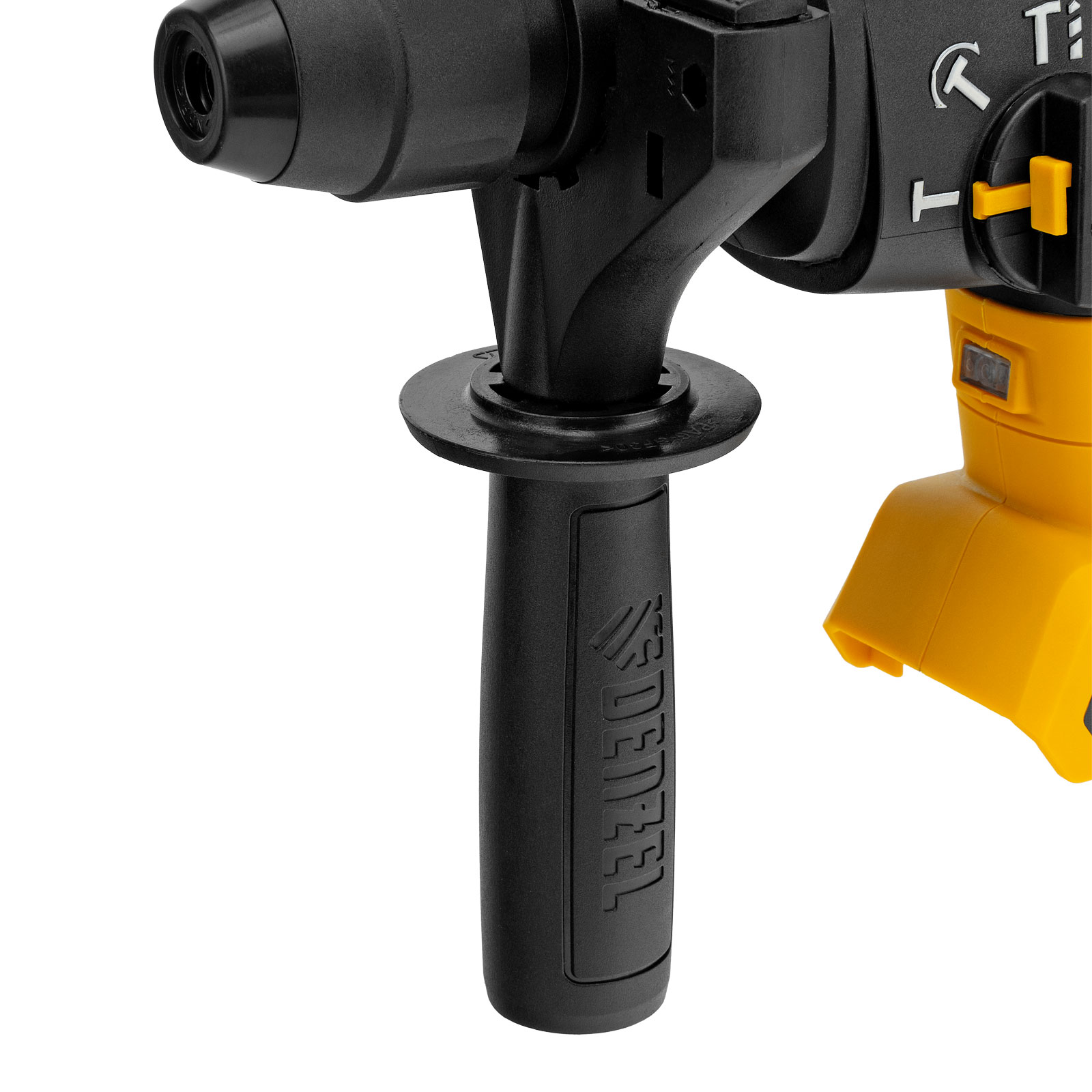 Аккумуляторный перфоратор Denzel BLRH-IB-26-0 26702 питается от аккумулятора Li-Ion увеличенной емкости с рабочим напряжением 18 В (не входит в комплект поставки). Предназначен для сверления отверстий в различных материалах, а также для штробления стен и разрушения кирпичной кладки. Предусмотрено 4 режима работы: сверление, бурение, долбление + регулировка положения долота (опция Vario Lock). Максимальный диаметр отверстий в древесине составляет 40 мм, металле — 13 мм, бетоне — 26 мм.,Инструмент совершает до 4800 ударов в минуту, развивая энергию до 3 Дж, чем обусловлена его высокая производительность и эффективная работа с твердыми материалами. Перфоратор пригодится для проведения строительных и ремонтных работ. В комплект поставки входит дополнительная рукоятка и ограничитель глубины сверления.