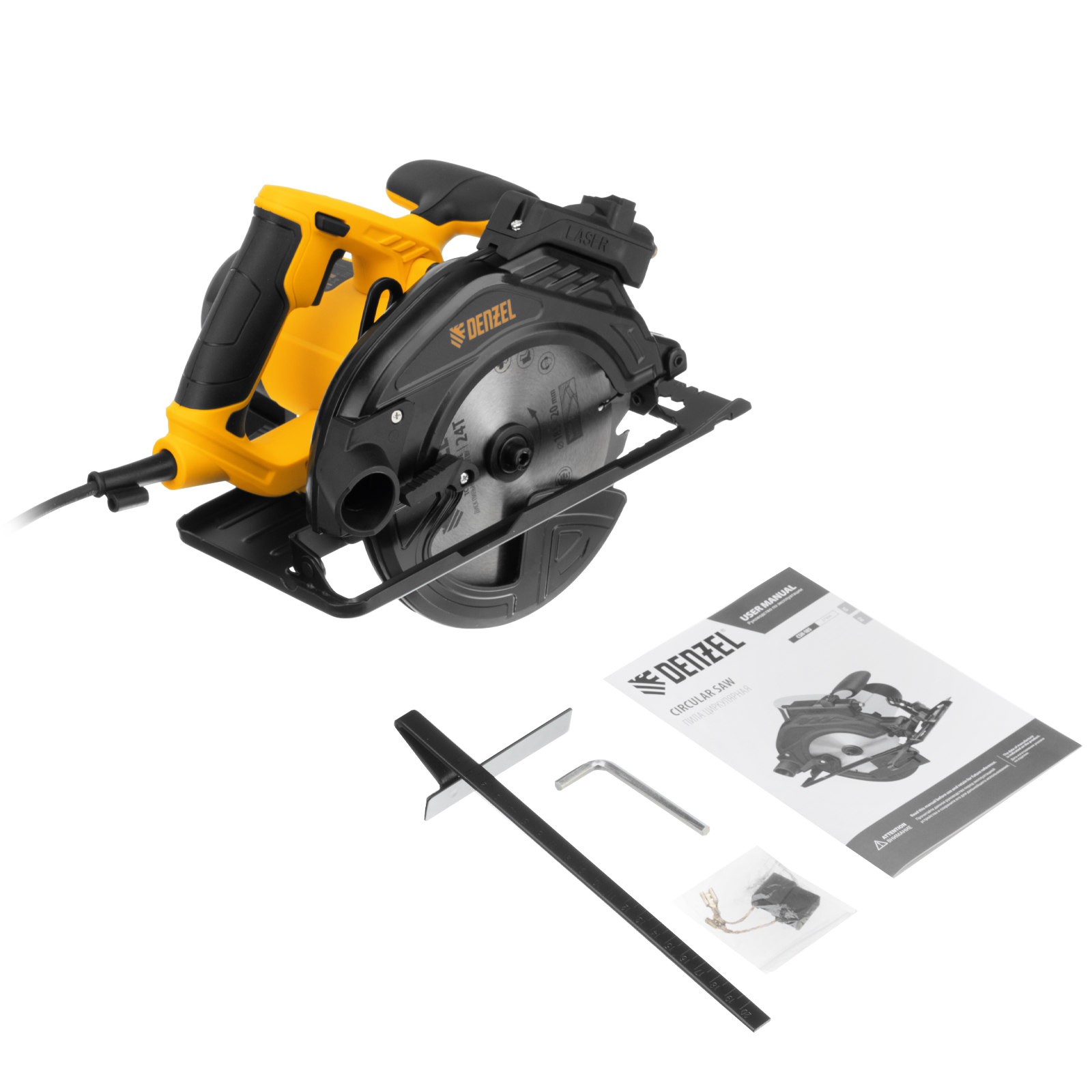 Пила циркулярная - 1 штКлюч для снятия диска - 1 штПараллельная направляющая - 1 штПильный диск по дереву - 1 штЭлементы питания ААА - 2 штКомплект запасных угольных щёток - 1 штРуководство по эксплуатации с гарантийным талоном - 1 шт |