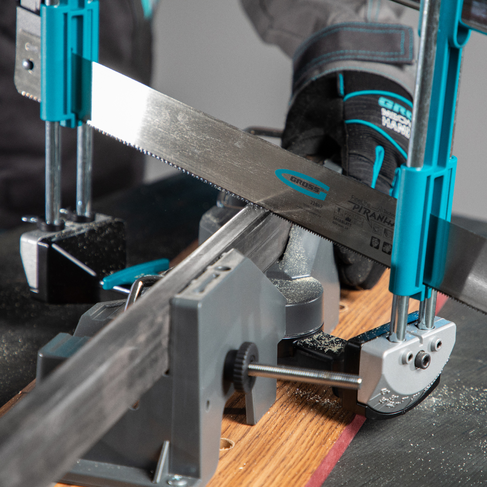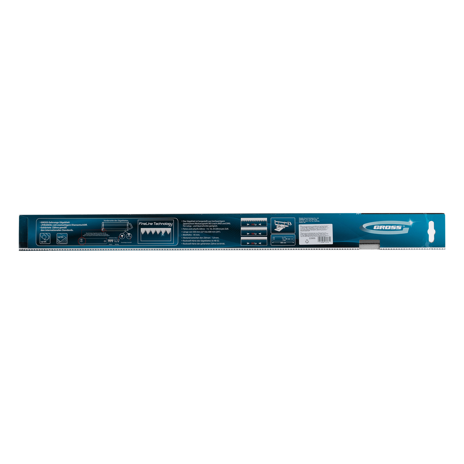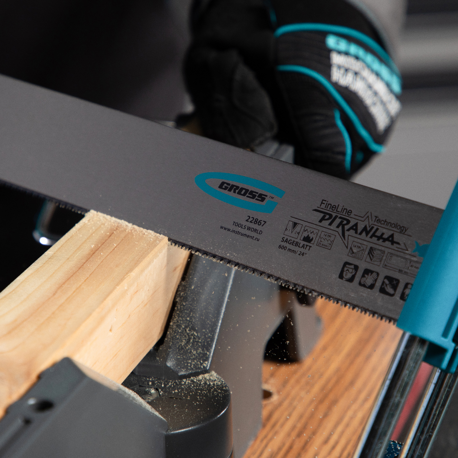 Пильное полотно Gross «PIRANHA» 22869 длиной 600 мм, с каленым зубом с 2D-заточкой, 18 TPI — режущий элемент для прецизионного стусла, применяемый для распила под углом заготовок из дерева, мягкого металла и пластика. Мелкие зубья с шагом 18 TPI позволяют получить точный и чистый рез. Полотно используется для пиления плинтусов, реек, дверных наличников и других деталей.
