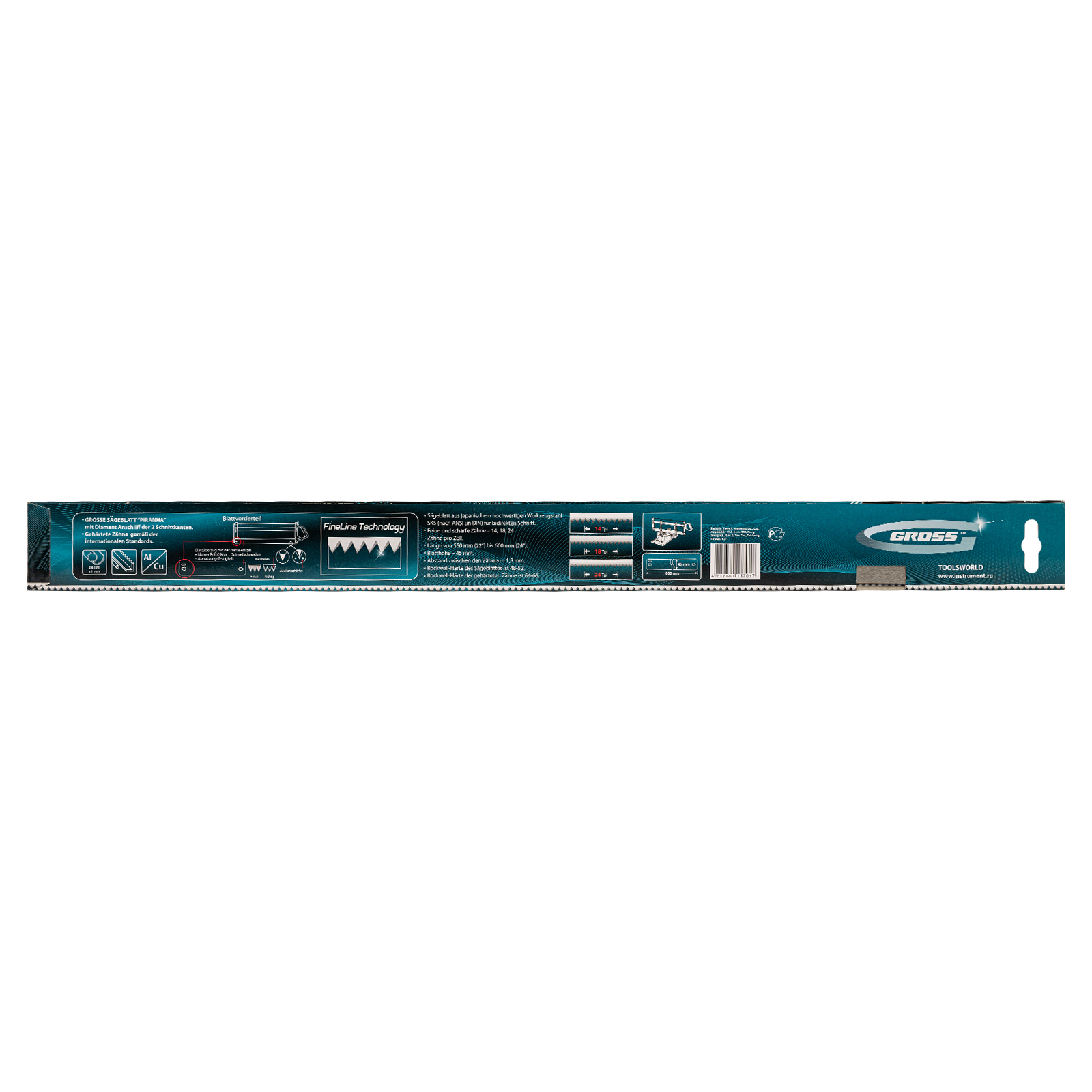 Пильное полотно Gross «PIRANHA» 22871 длиной 600 мм, с каленым зубом с 2D-заточкой, 24 TPI — режущий элемент для прецизионного стусла, применяемый для распила под углом заготовок из дерева, мягкого металла и пластика. Мелкие зубья с шагом 24 TPI позволяют получить точный и чистый рез. Полотно используется для пиления плинтусов, реек, дверных наличников и других деталей.