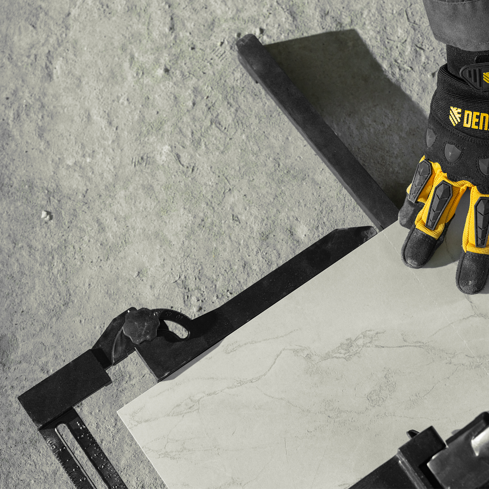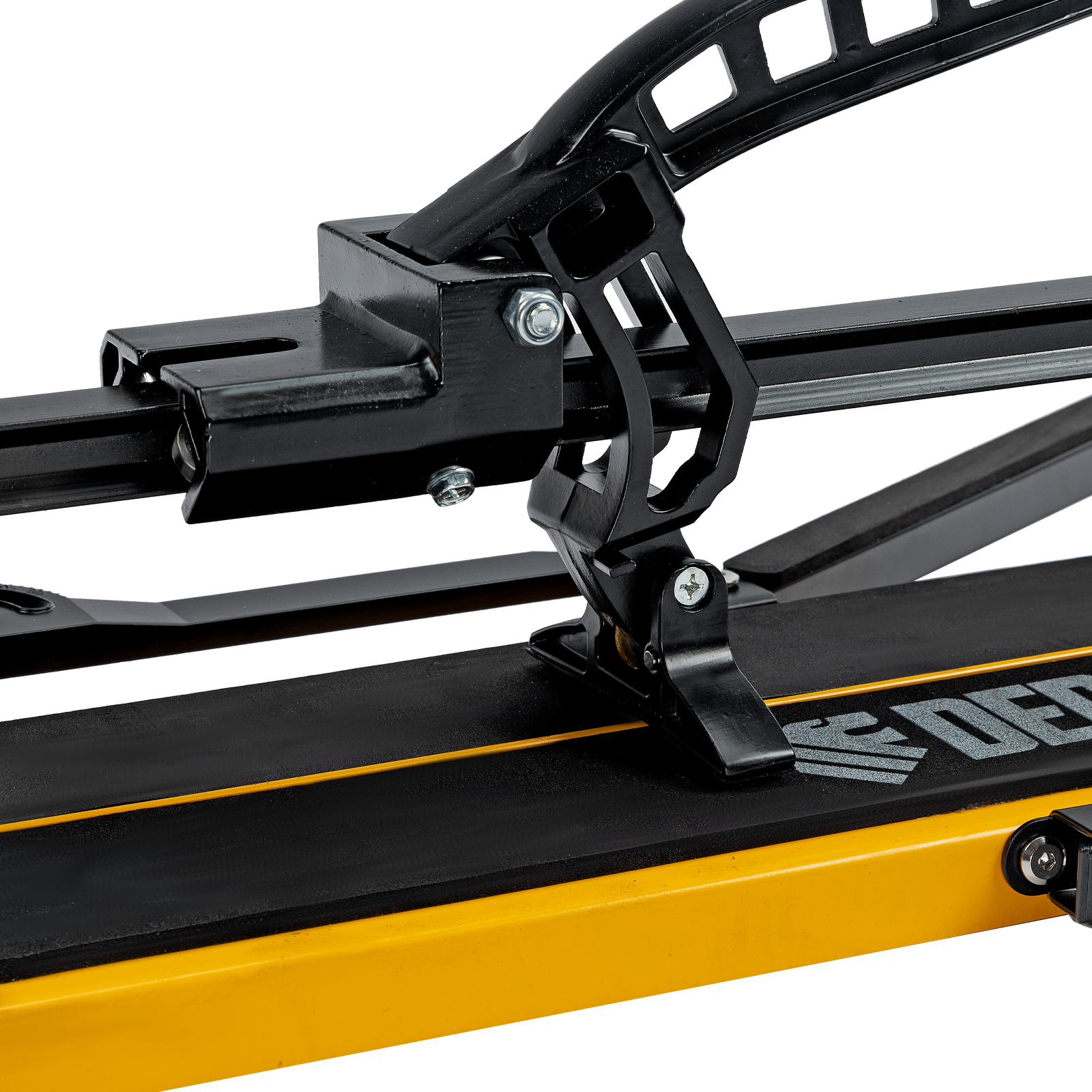 - Удобная работа — благодаря противоскользящим накладкам плиткорез не смещается даже на гладких поверхностях.