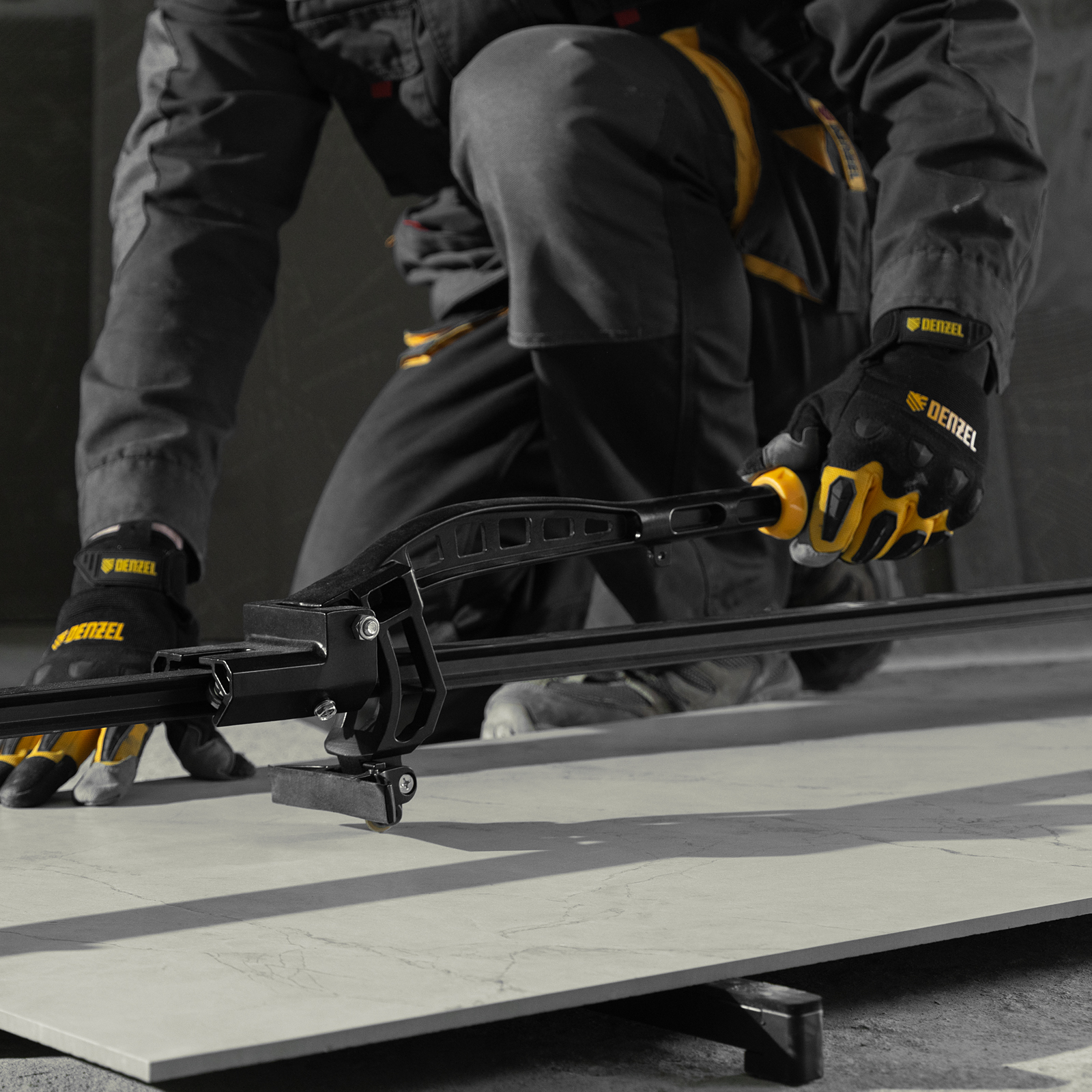 Плиткорез рельсовый 1200х16мм, каретка на подш., стальная станина, усил. рукоятка-пенал Denzel в Москве