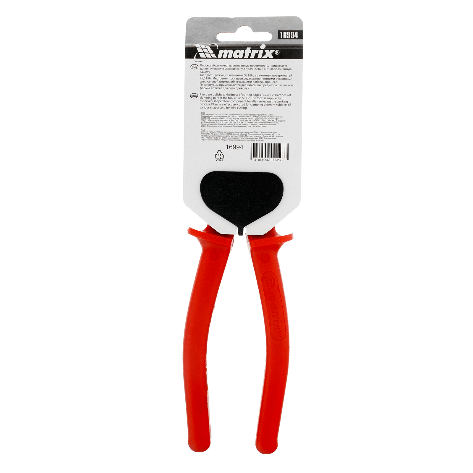Плоскогубцы Econom, 200 мм, шлифованные, пластмассовые рукоятки Matrix в Москве
