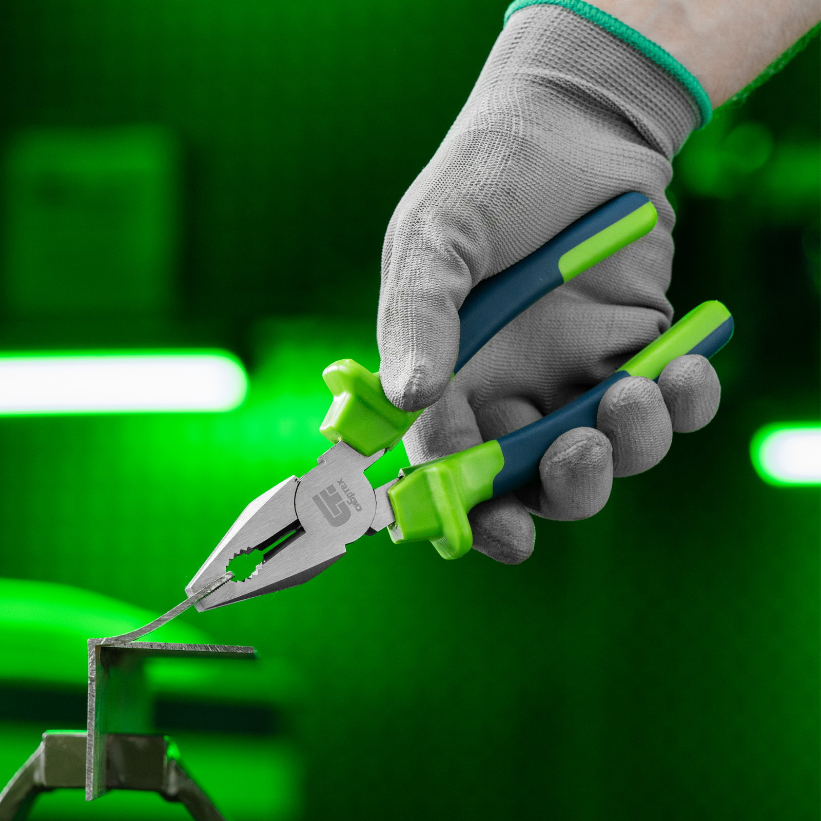 Комбинированные плоскогубцы Сибртех 17052 длиной 200 мм, с двухкомпонентными рукоятками, предназначены для перекусывания проволоки и захвата крепежа, прутков и других деталей. Будут полезны слесарю и монтажнику во время наладки оборудования, ремонта сантехники и выполнения других работ.