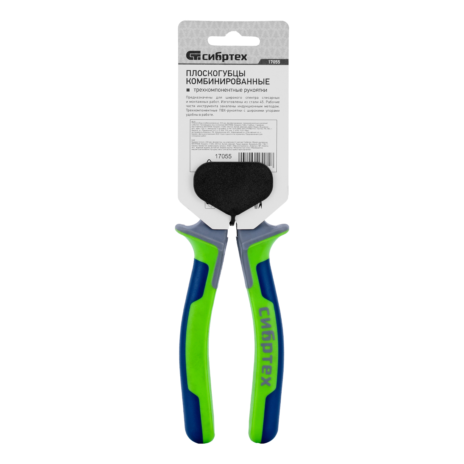 Плоскогубцы комбинированные, 200 мм, фосфатирование, трехкомпонентные рукоятки Сибртех в Москве