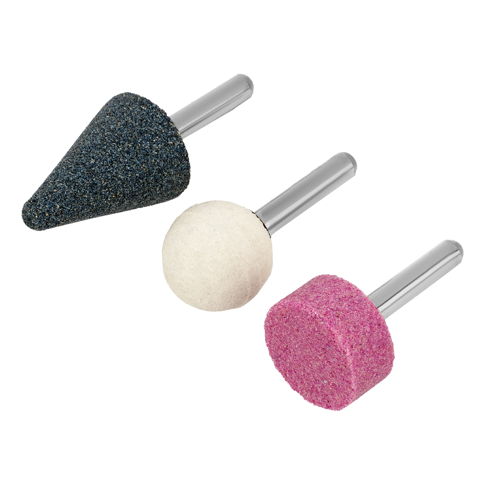 - Обработка поверхностей с различным рельефом — в комплект поставки входит 10 шлифовальных камней разной формы.