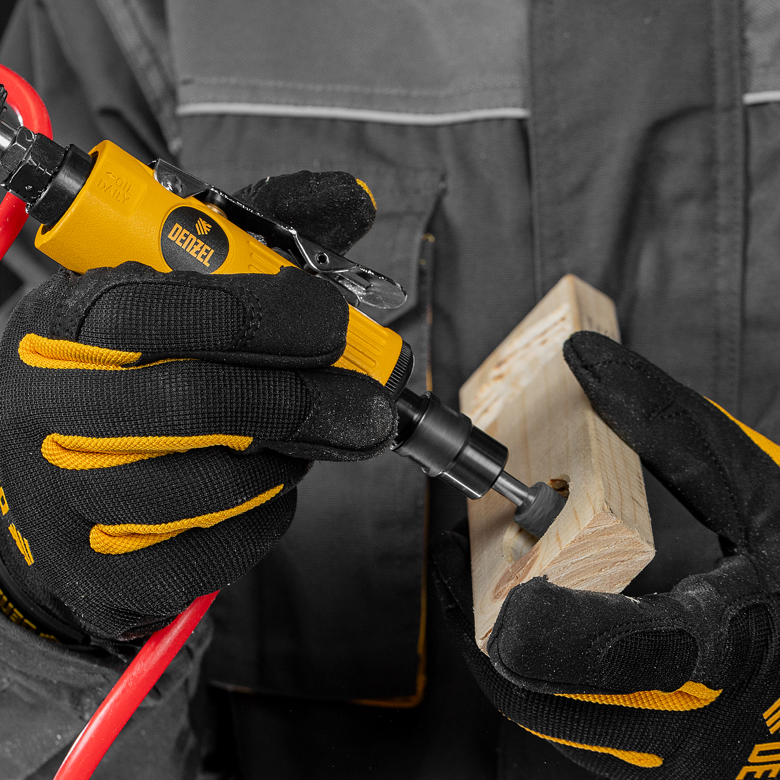 - Комфортная работа без ощущения усталости — пневмошлифмашина имеет небольшие габариты и весит 356 г.